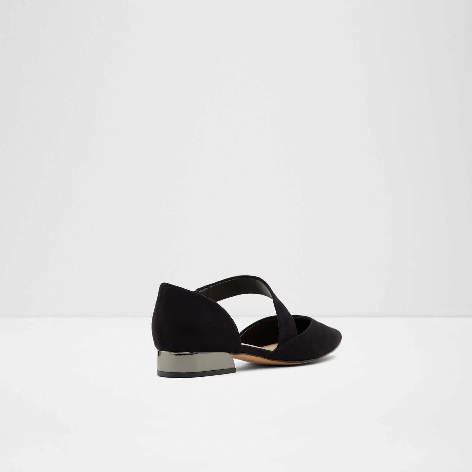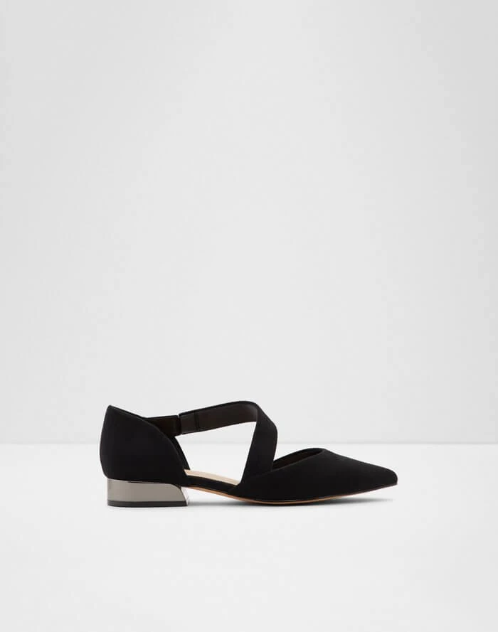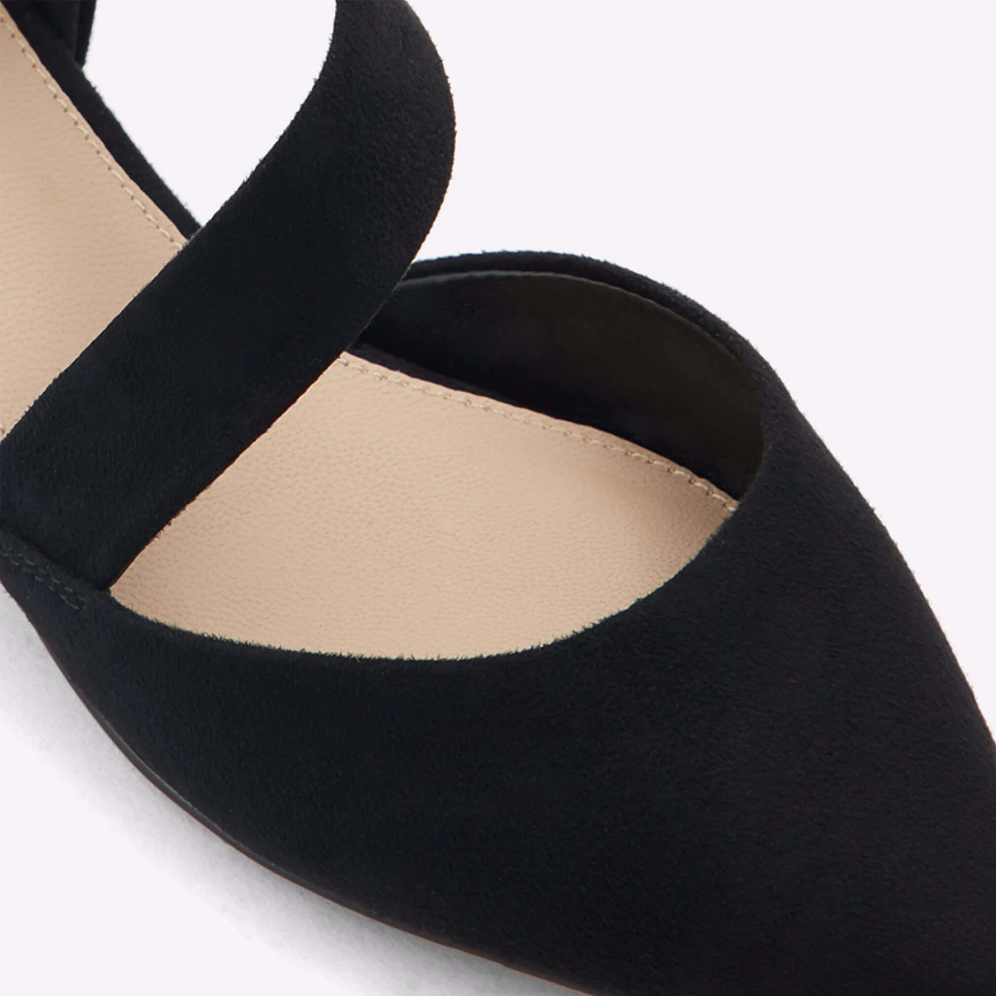 #Style notes *For a stylish step between the office and happy hour, add this pointy-toe flat to your work routine. Its asymmetrical top strap adds a contemporary twist on classic looks. #Details * Ballerina * Pointy toe * Block heel * Slip on * Colour Black #Materials *Upper: Textile *Sole: Rubber #Measurements *Heel height: 2.5 cm
