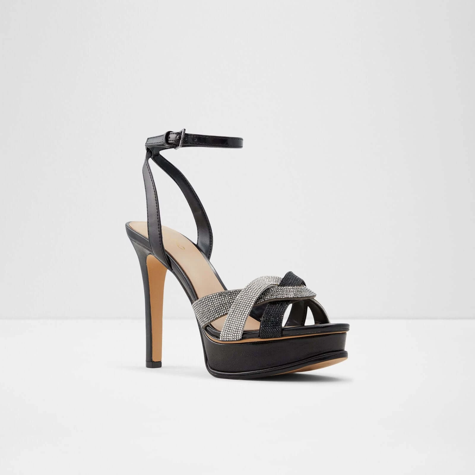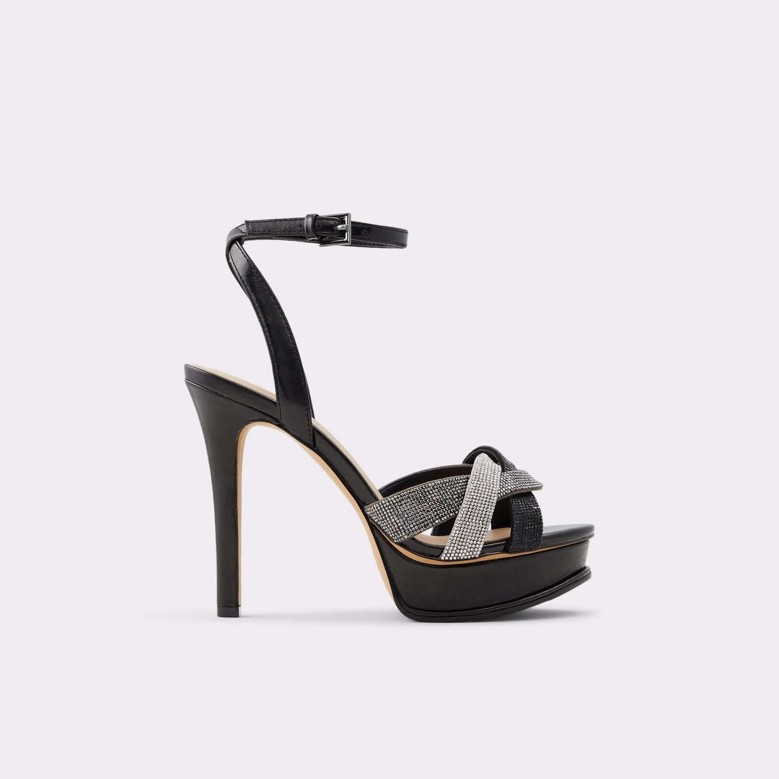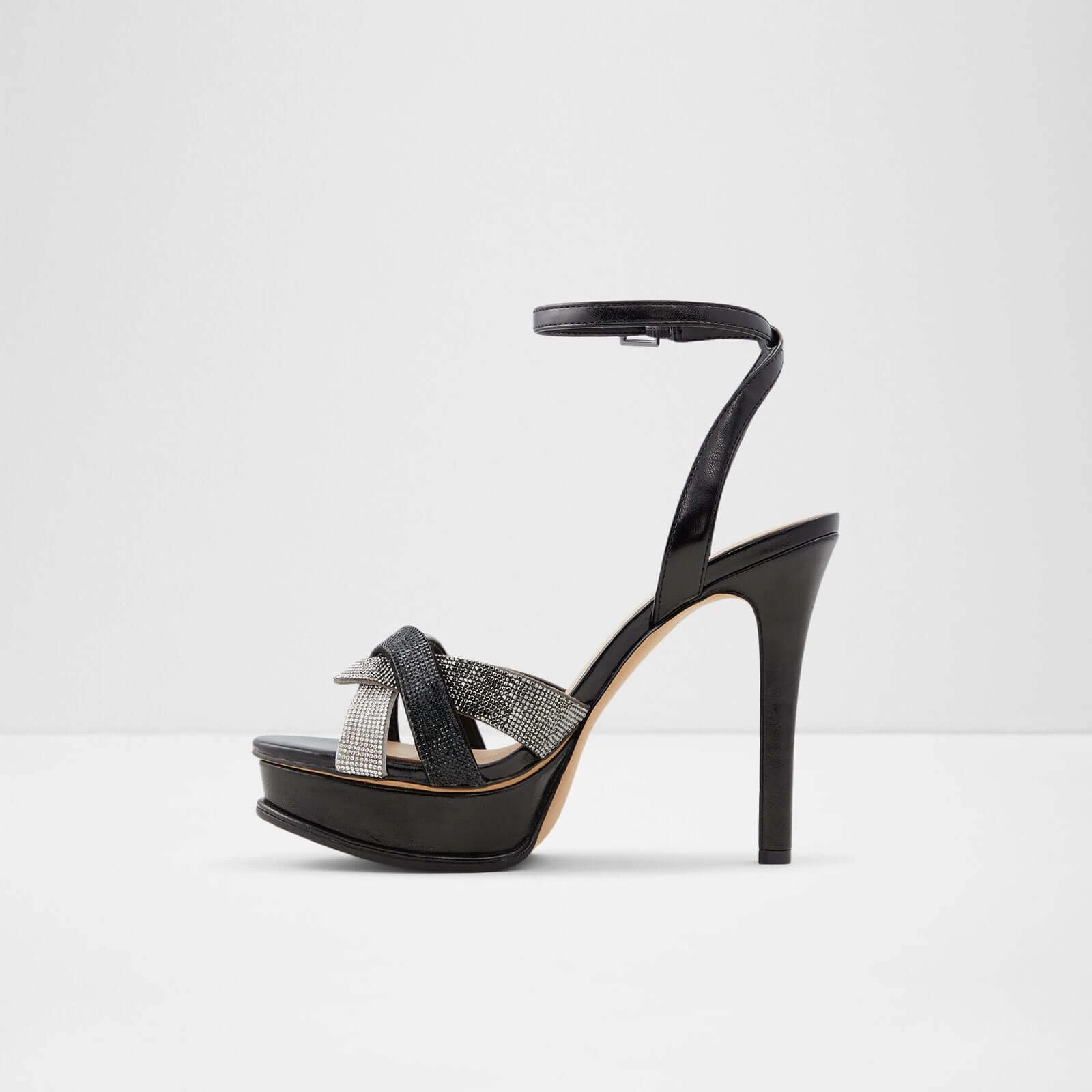 #Style notes *Prepare to dazzle with these sky-high platform heels featuring gorgeous rhinestone detailing. A bold, statement-making pair that is just as comfortable as it is stylish thanks to its unique lightweight outsoles. #Details * High heel * Almond toe * Platform * Buckle closure * Rhinestone embellishment * Colour Black #Materials *Upper: Synthetic *Sole: Rubber #Measurements *Heel height: 11.5 cm *Platform height: 2.5 cm