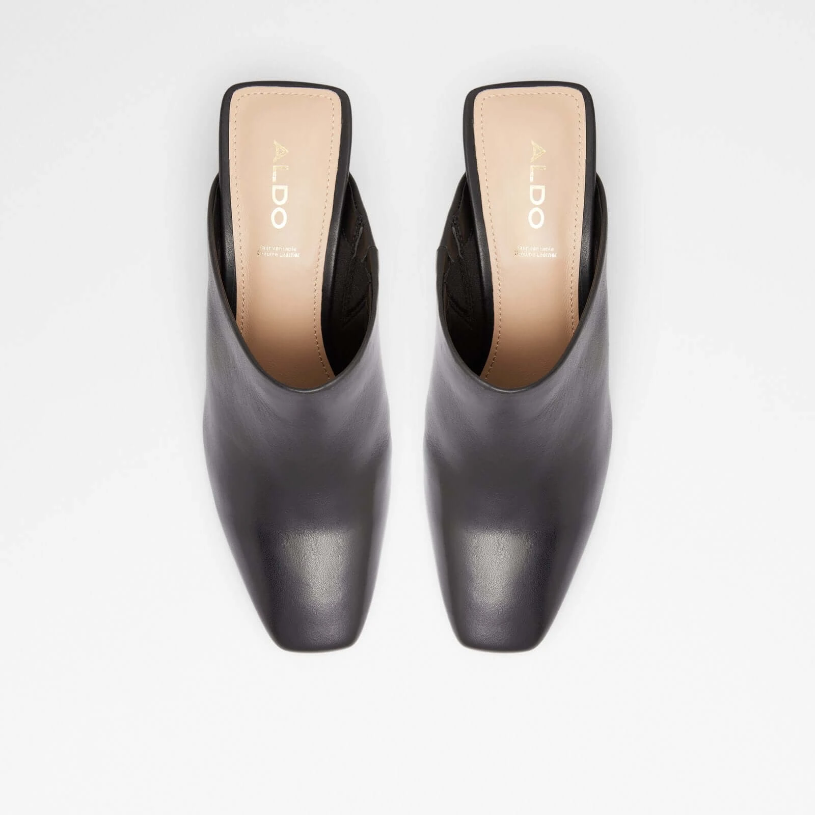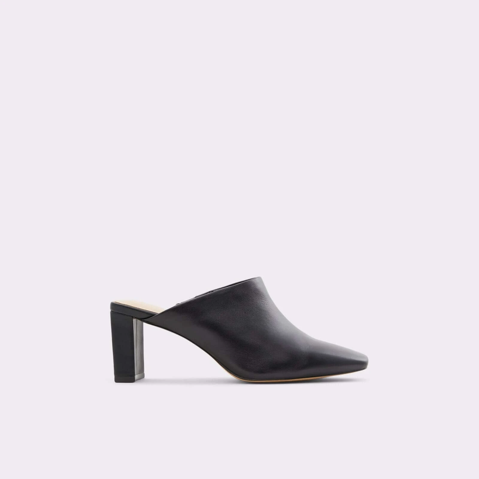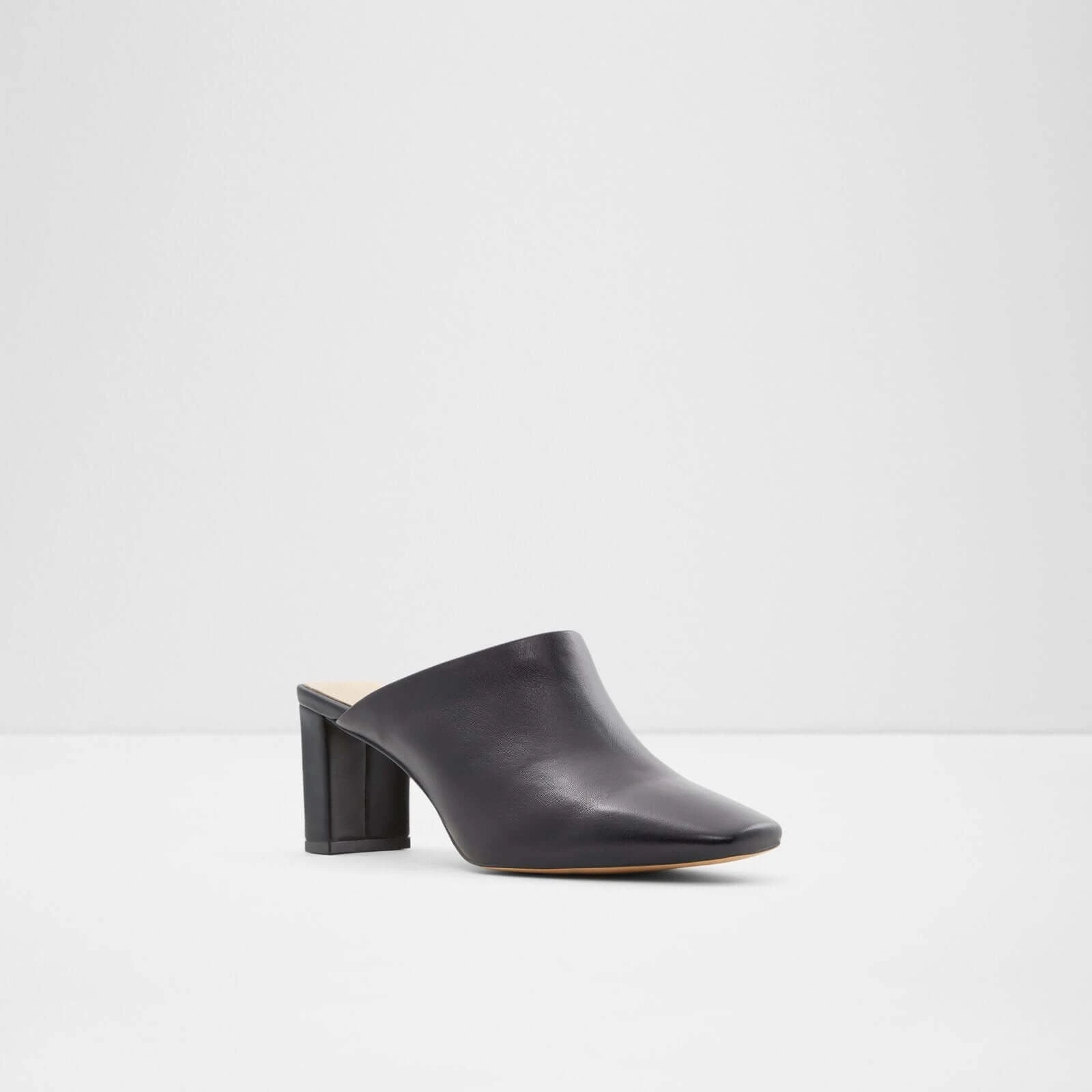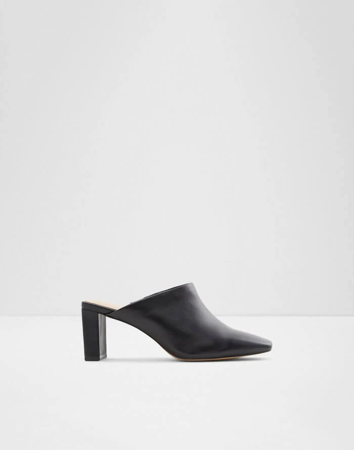 #Style notes *Channel major 90s vibes with this low heel mule with a trendy square toe and block heel. Wear them with flared jeans or a maxi skirt to complete the look. #Details * High heel mule * Square toe * Block heel * Slip on * Colour Black #Materials *Upper: Leather *Sole: Rubber #Measurements *Heel height: 6.0 cm