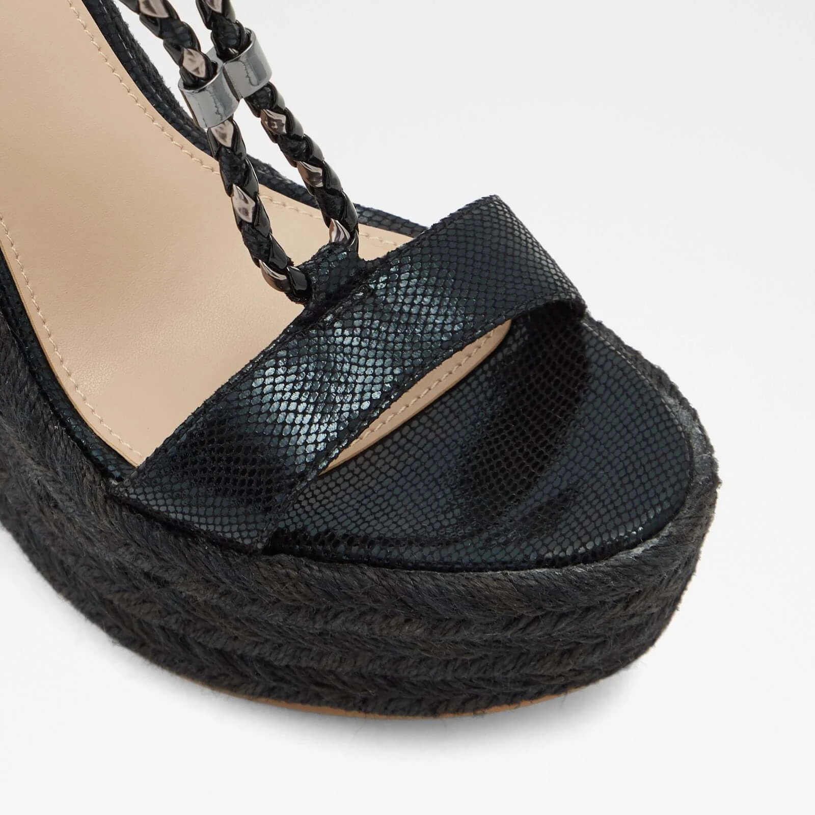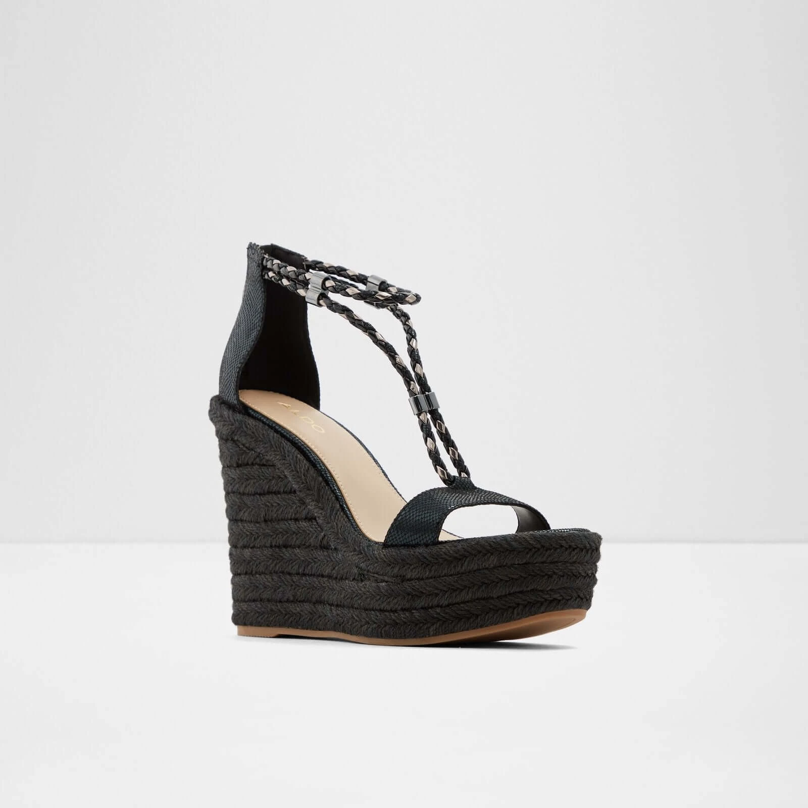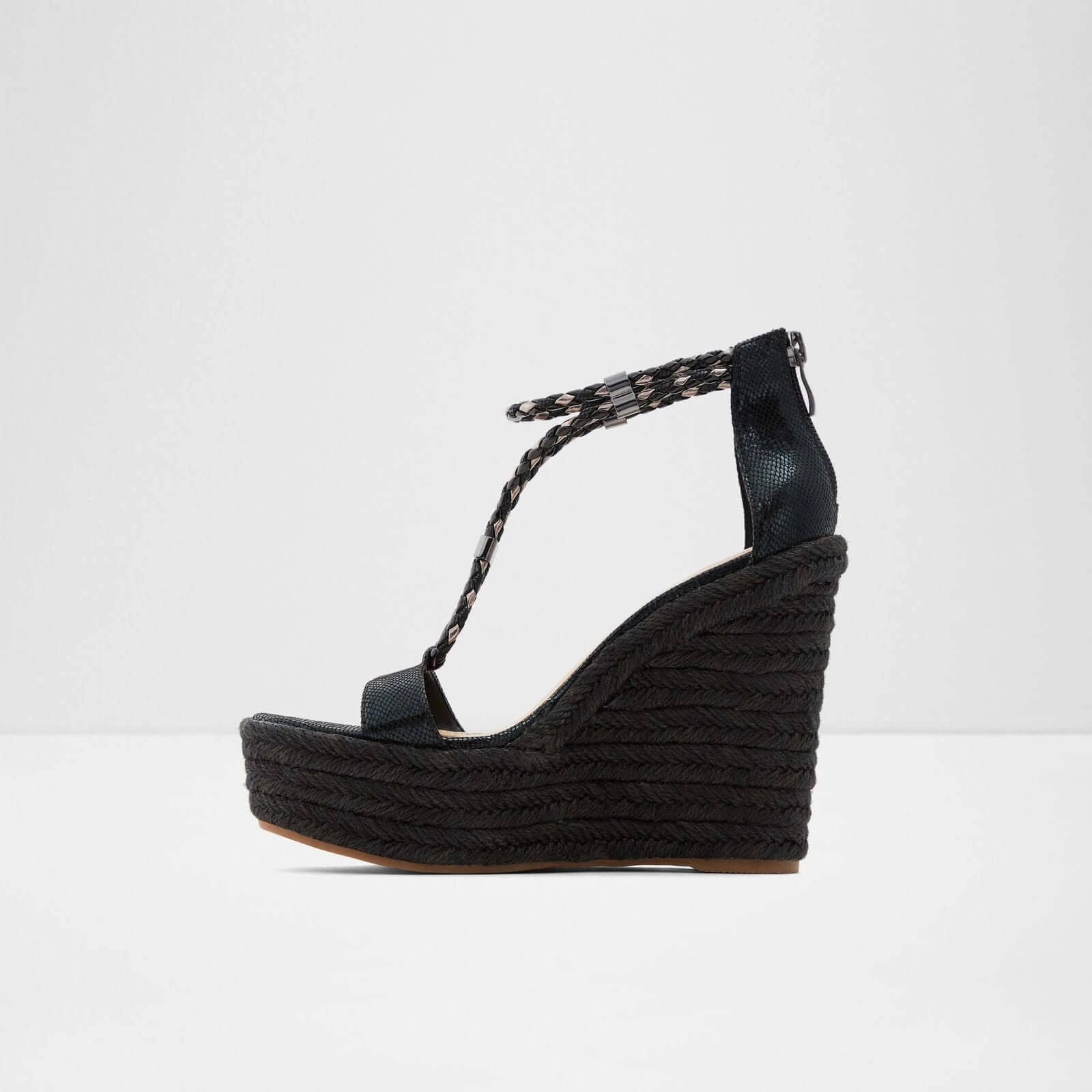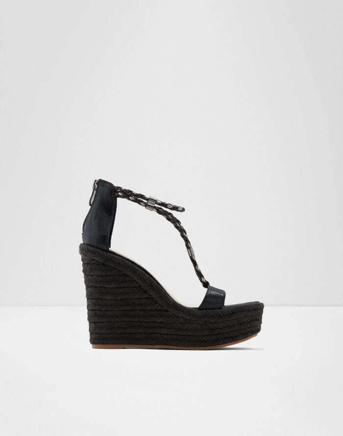 #Style notes *Because everyone needs a wow factor in their wardrobe, in comes this high-wedge t-strap sandal to whisk you away to festival adventures and beach getaways. Adjustable ankle strap and rubber sole to keep you grounded on slick surfaces. Wear yours with jeans or flowy skirts. #Details * Wedge sandal * Round toe * Wedge * Zipper closure * Metal ornament * Colour Black #Materials *Upper: Synthetic *Sole: Rubber #Measurements *Heel height: 12.5 cm *Platform height: 4.0 cm