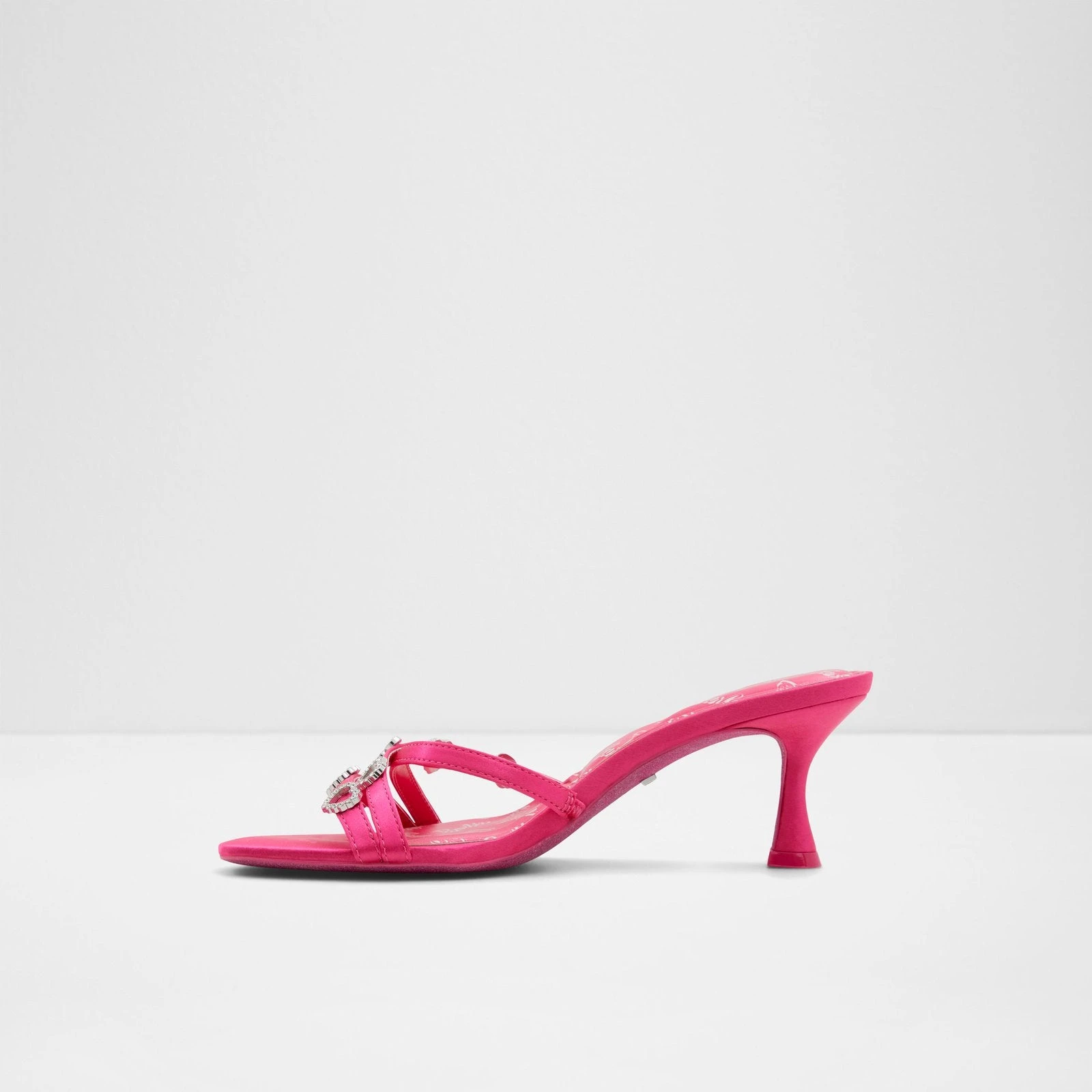 #Style notes *Barbie meets Y2K. A slip-on with sophistication, these strappy sandals channel big Barbie energy. The low heel makes them perfect for day or eveningโ meaning, you just might need them in the pink and the silver… To top it off, you can stride in style and comfort with our Pillow Walk technology – a double layer of cushion comfort so you can feel as good as you look.#Details * Heeled mule * Open square toe * Kitten heel * Slip on * Metal ornament * Colour Fuchsia #Materials *Upper: Textile *Main: Satin *Sole: Rubber #Measurements *Heel height: 2.25 inches