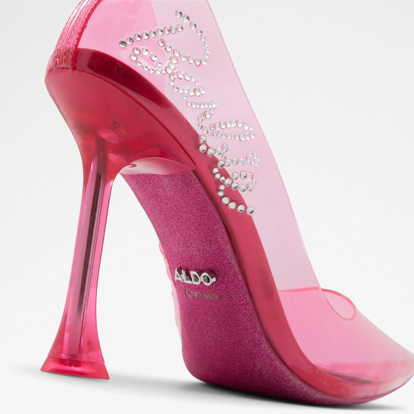 #Style notes *This is the ultimate Barbie signature style. In dreamy pink, these translucent stilettos feature a flared heel and that classic Barbie logo. Whether you admire them as artwork or add them to your wardrobe rotation, these are a must have for any Barbie lover. To top it off, you can stride in style and comfort with our Pillow Walk technology – a double layer of cushion comfort so you can feel as good as you look.#Details *Discrete breathing holes *Pump * Closed pointy toe * Stiletto heel * Slip on * Rhinestone embellishment * Colour Fuchsia #Materials *Upper: Synthetic *Main: Clear *Sole: Rubber #Measurements *Heel height: 4.0 inches