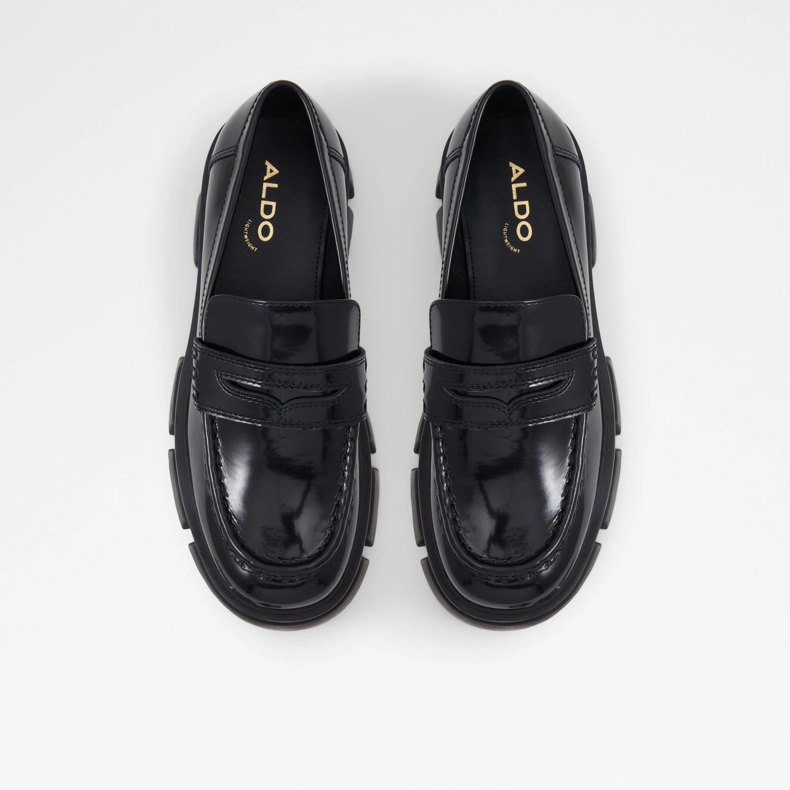 #Style notes *Bring on the 90s vibes with these standout chunky loafers designed with lightweight soles. #Details * Loafer * Closed round toe * Lug sole * Slip-on * Colour Black #Materials *Upper: Leather *Main: Shiny *Sole: Rubber #Measurements *Heel height: 2.5 cm *Platform height: 1.75 cm