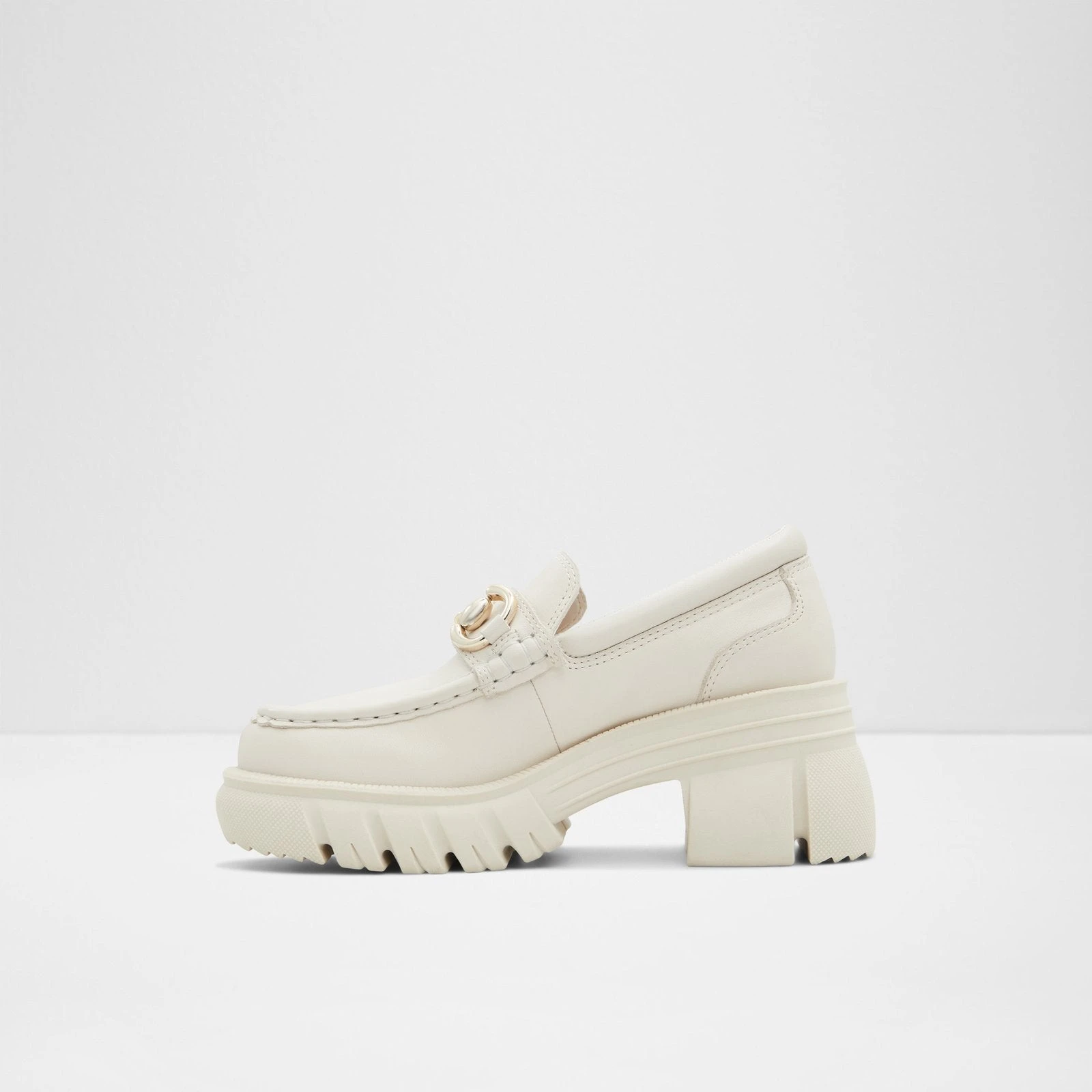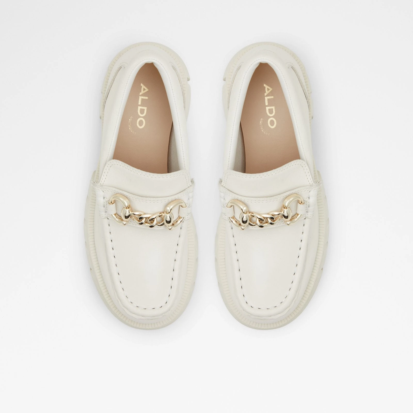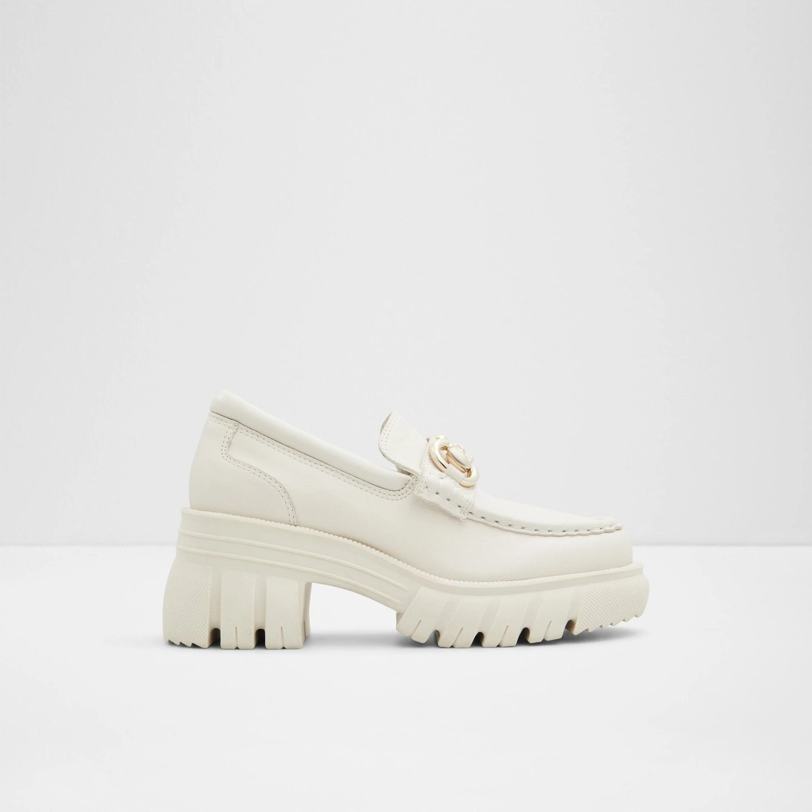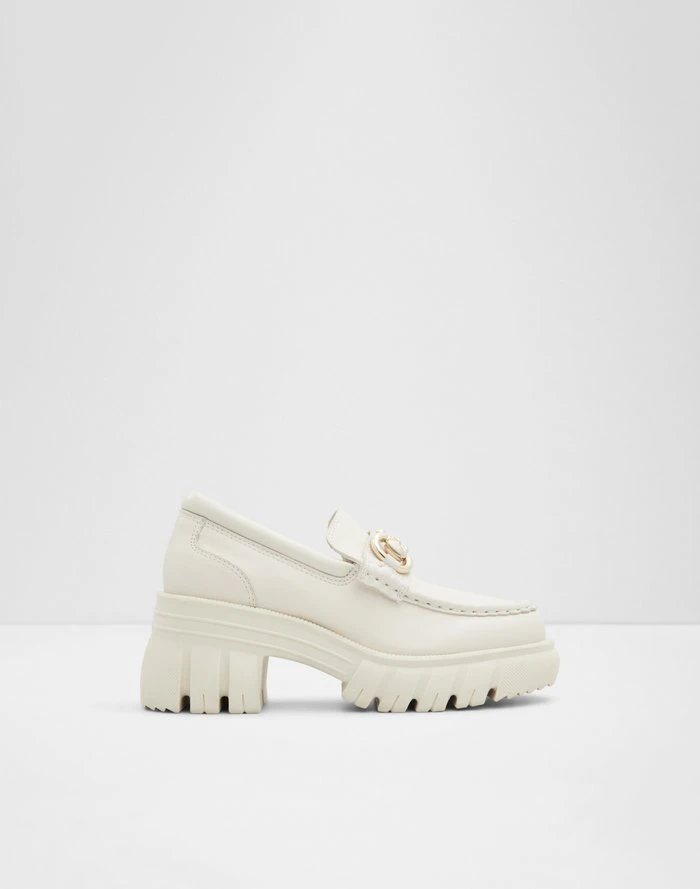 #Style notes *Easy to wear, easy to pair. These chunky lug sole loafers are a smart choice for daytime styling. #Details * Loafer * Closed round toe * Lug sole * Slip-on * Keeper ornament * Colour White #Materials *Upper: Leather *Main: Smooth *Sole: Rubber #Measurements *Heel height: 2.5 cm *Platform height: 1.5 cm