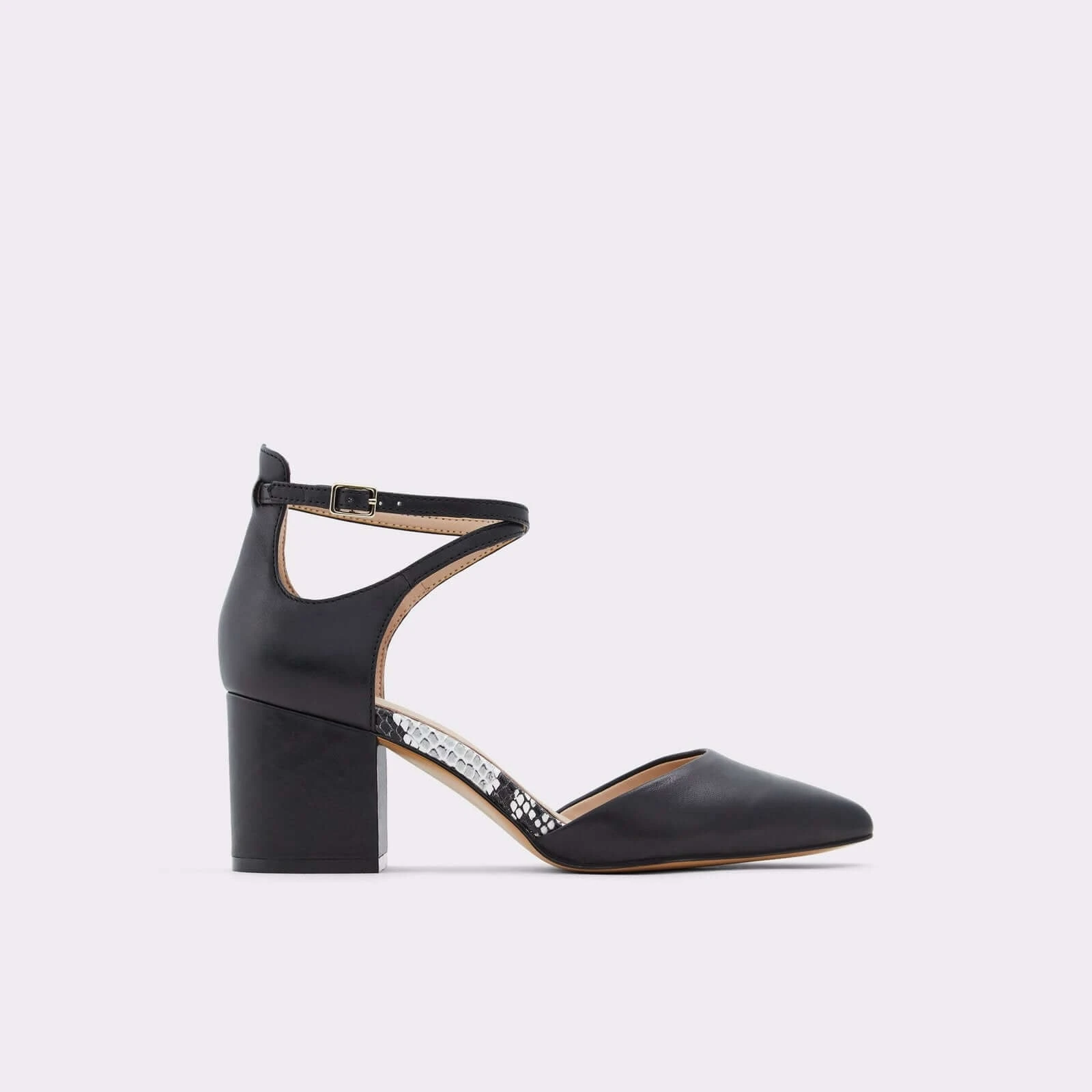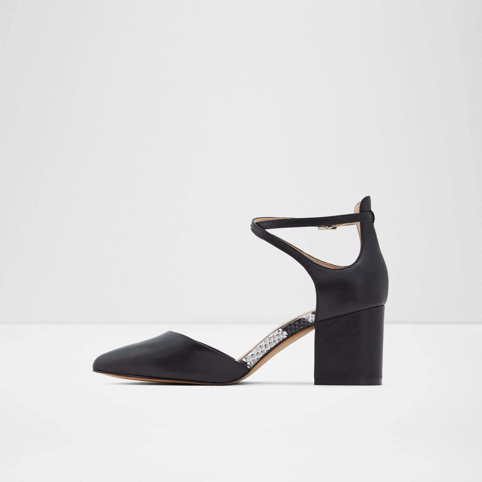 #Style notes *Trend-forward and all-occasion , this crisscross ankle-strap dress shoe features a low block heel and pointy toe for the perfect style for work to weekend wear. #Details * High heel shoe * Pointy toe * Block heel * Buckle closure * Colour Black #Materials *Upper: Leather *Sole: Rubber #Measurements *Heel height: 6.0 cm