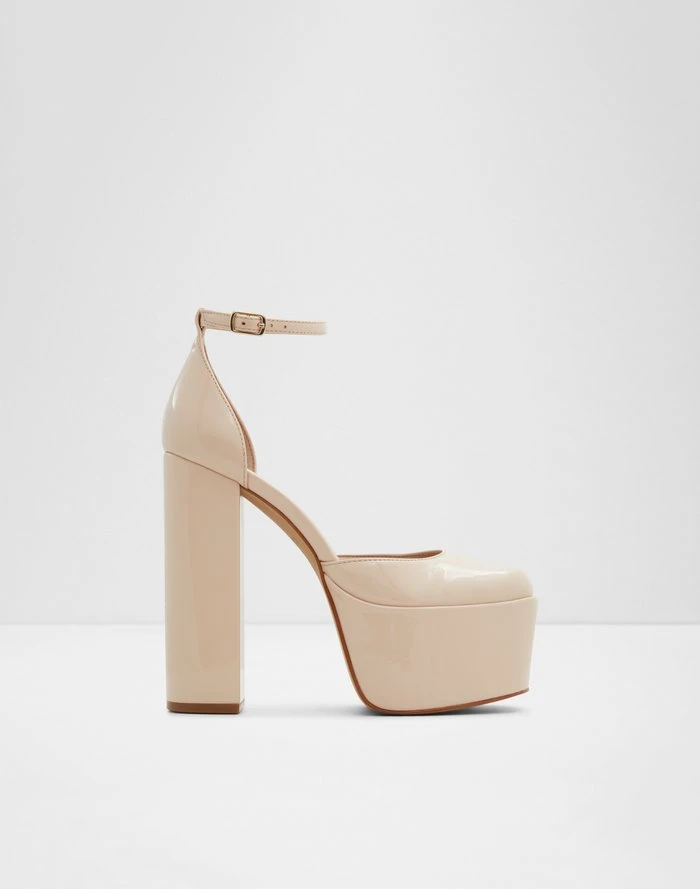 #Style notes *Chunky platform, towering block heel and a whole lot of leg lengthening appeal make these platform heels complete showstoppers. #Details * Ankle strap heeled shoe * Closed almond toe * Flatform * Buckle closure * Colour Bone #Materials *Upper: Synthetic *Main: Patent #Measurements *Heel height: 5.0 cm *Platform height: 2.5 cm