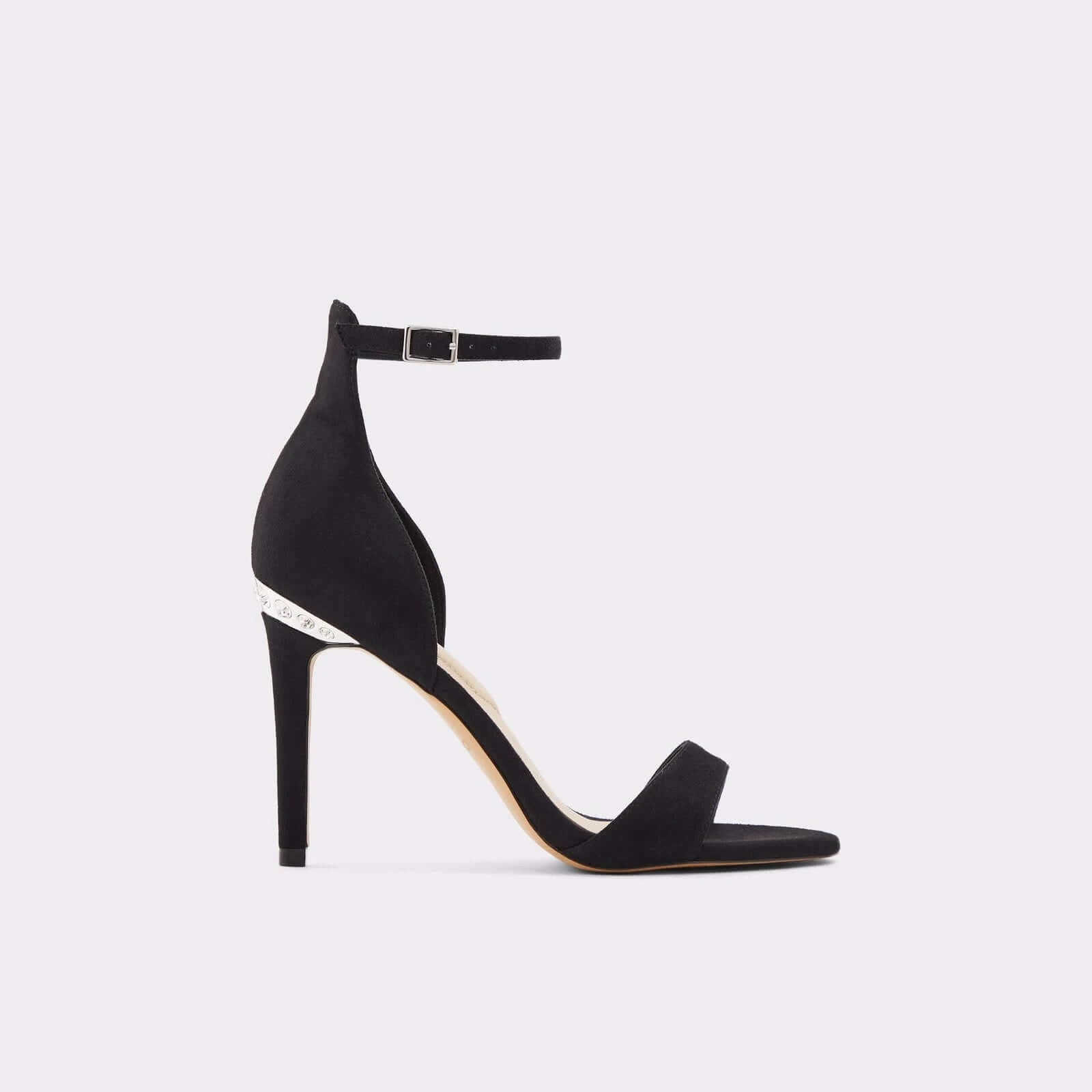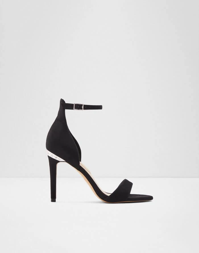 #Style notes *Rated high on the glamour scale, this sandal RSVP’s yes to every party dress. Featuring a high collar and buckled ankle strap, they’re a modern style you’ll wear all year round. #Details * High heel * Round toe * Stiletto heel * Buckle closure * Rhinestone embellishment * Colour Black #Materials *Upper: Textile *Sole: Rubber #Measurements *Heel height: 9.5 cm