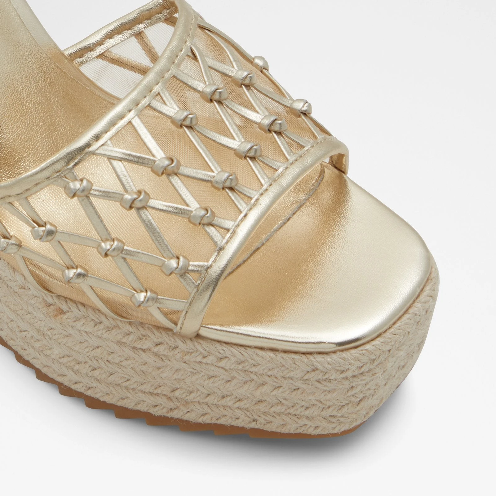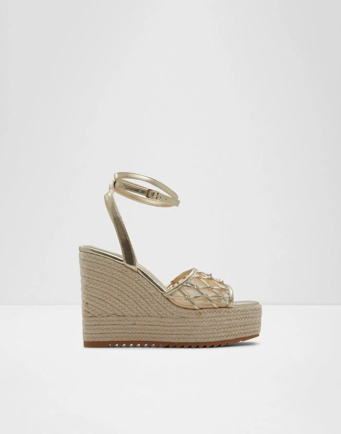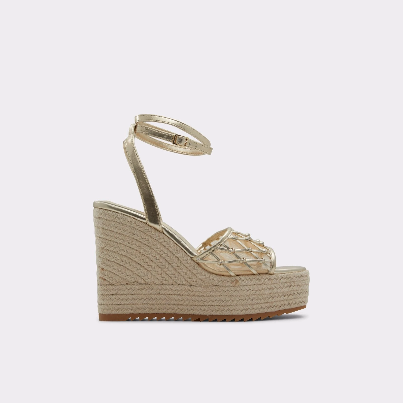 #Style notes * Check out our super-stylish Dellen wedge sandal that brings a sophisticated update to the classic espadrille with a chic, buckle-style ankle strap.#Details * Strappy wedge sandal * Open round toe * Wedge heel * Buckle closure * Colour Champagne #Materials *Upper: Synthetic *Main: Mixed materials *Sole: Rubber #Measurements *Heel height: 11.4 cm *Platform height: 4.45 cm