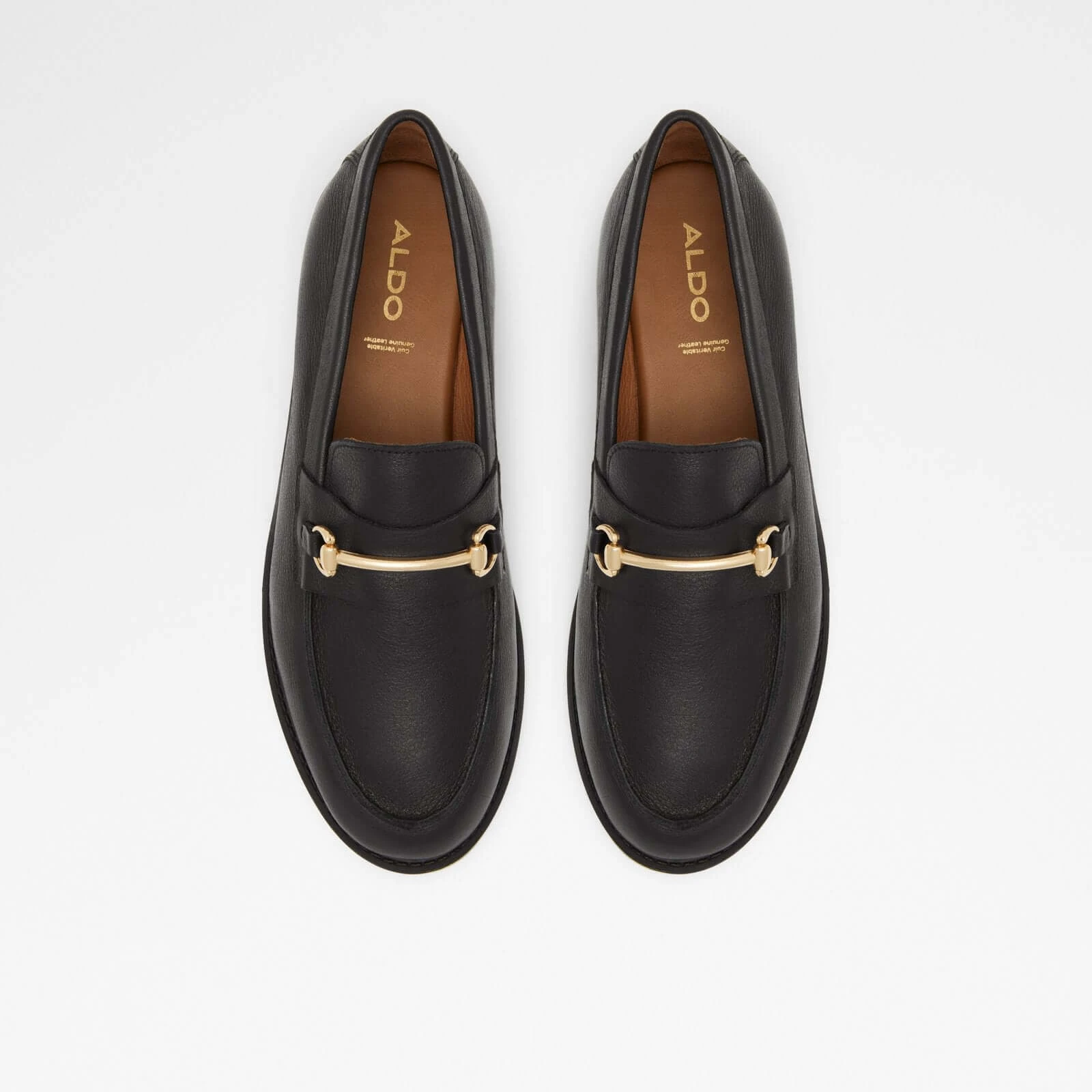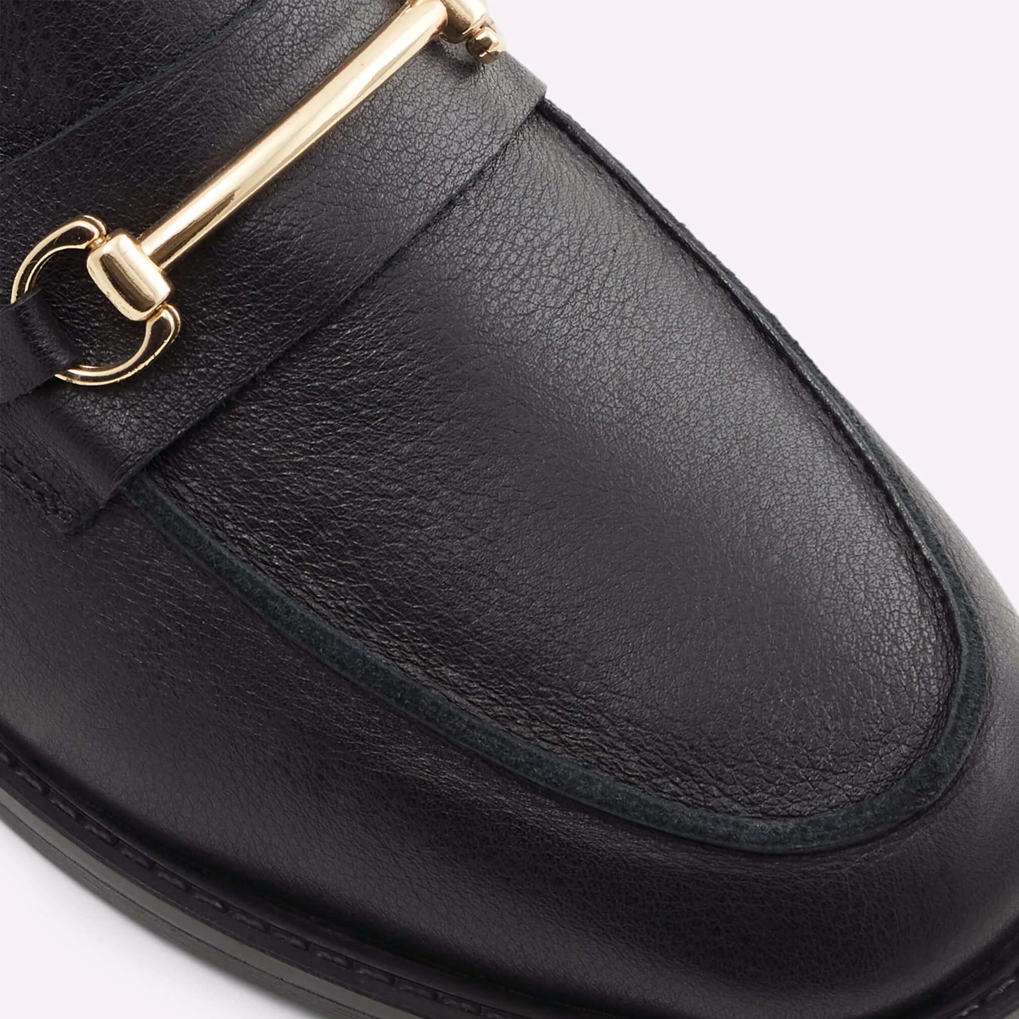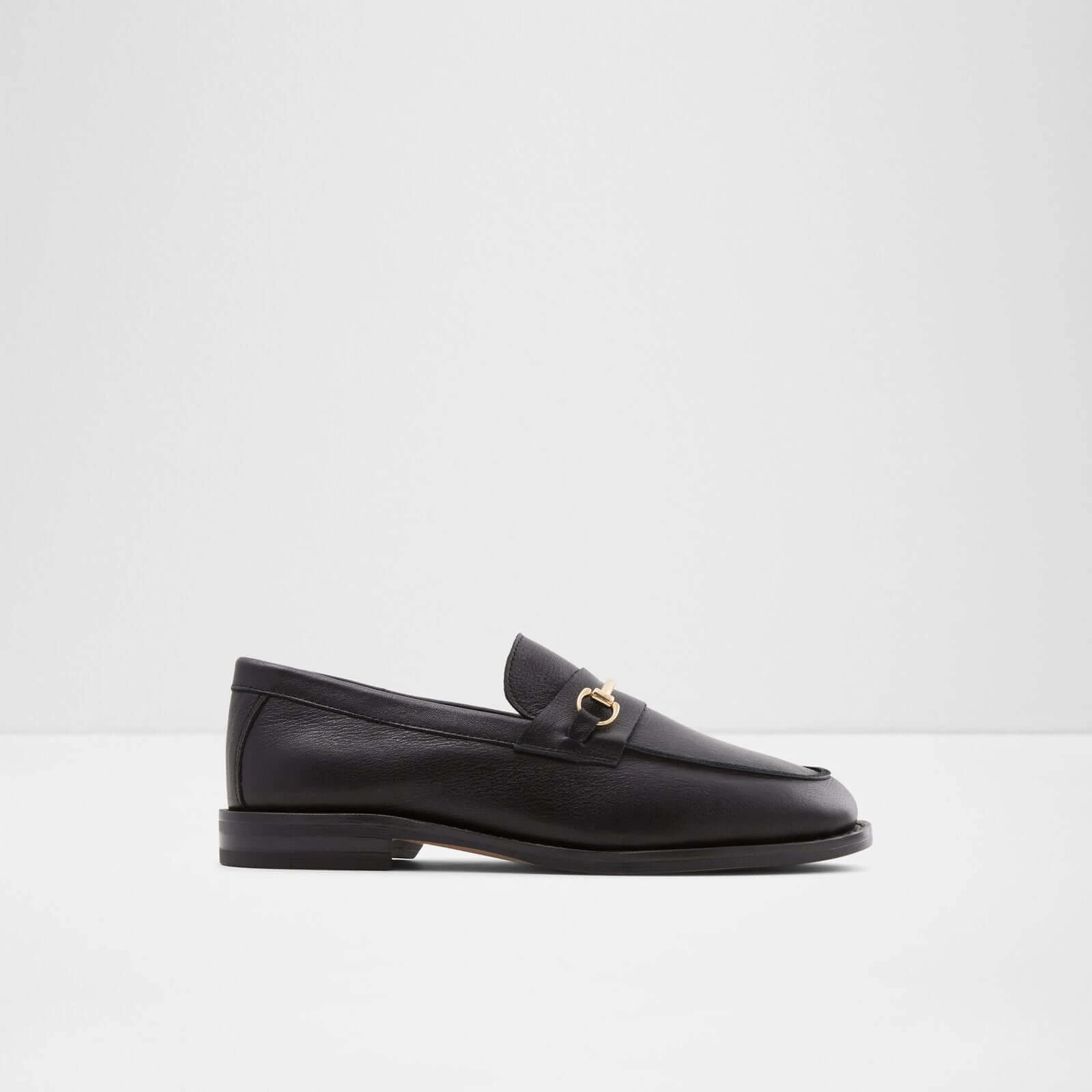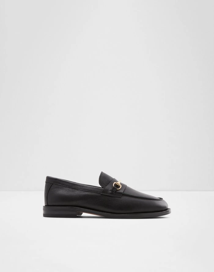 #Style Notes *Old school cool. Our round toe loafers with metal detailing are just begging to be paired with an oversized sweater vest. Style a monochrome outfit for a curated, minimalist look. #Details *Gold Details *Colour: Black *Heel Height: 0.75 In (1.91 Cm) *Heel Type: Block (Thick) #Materials *Main Material: Leather *Sole Material: Rubber