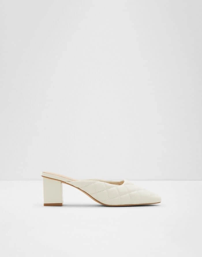 #Style notes *Quilted detail. Structured block heel. Trendy silhouette. There’s so much to love about these easy on, easy off mules! #Details * High heel shoe * Square toe * Block heel * Slip on * Colour White #Measurements *Heel height: 2.25 inches