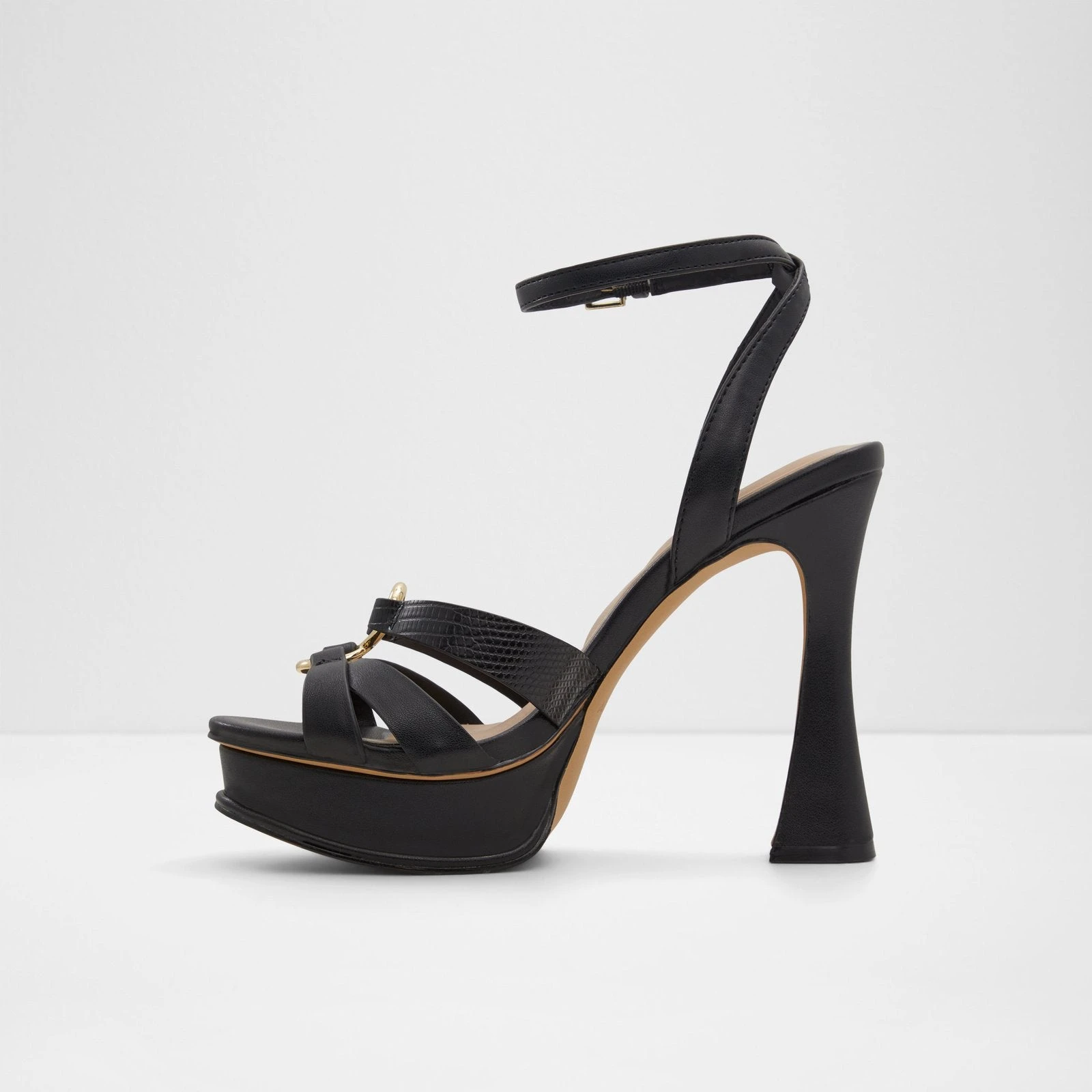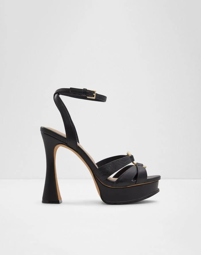 #Style notes * Take that favorite OOTD over the top with our bold little Elbalia sandal. Thick platform sole, killer heel and that chic little ankle strap keep this edgy look downright sophisticated. #Details * Strappy heeled sandal * Platform * Colour Black #Measurements *Heel height: 11.4 cm *Platform height: 6.35 cm