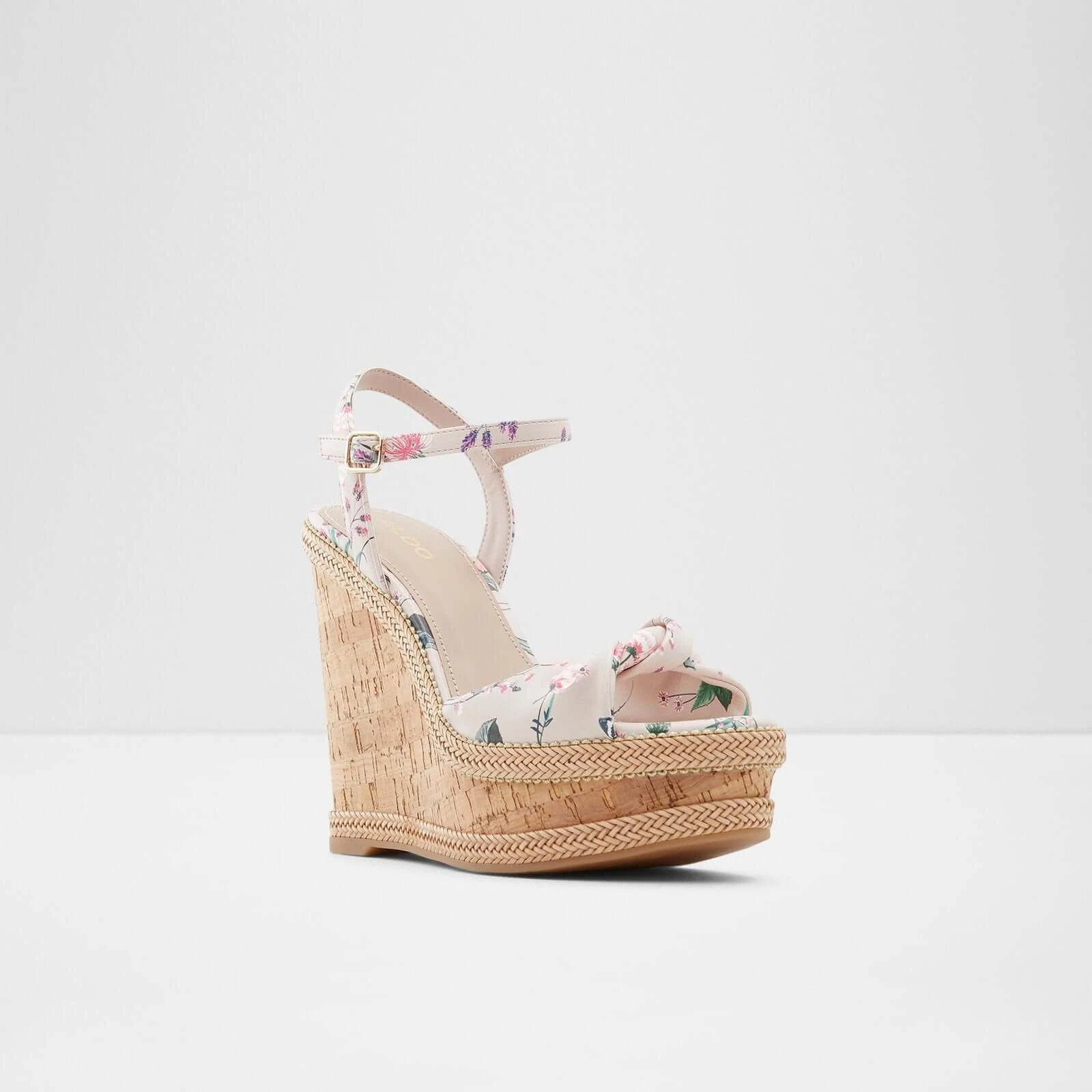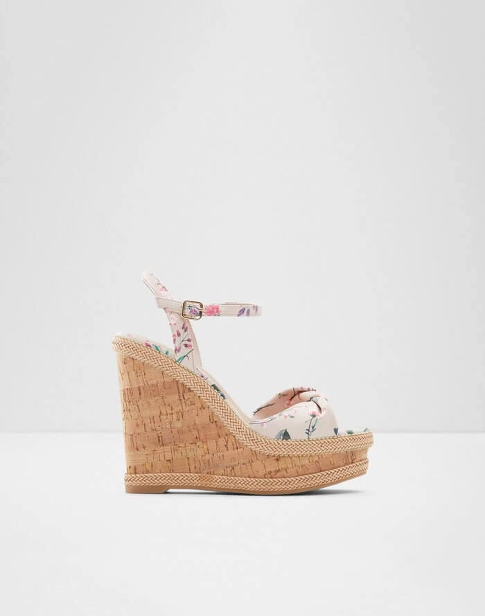 #Style Notes *Nothing says summer like a pair of wedge espadrilles. We love the delicate ankle buckle and square toe! Frilly skirts and tea dresses await your expert styling! #Details *Colour: Pink Overflow *Heel Height: 5.00 In (12.70 Cm) *Heel Type: Wedge #Materials *Main Material: Synthetic *Sole Material: Thermo Plastic Rubber
