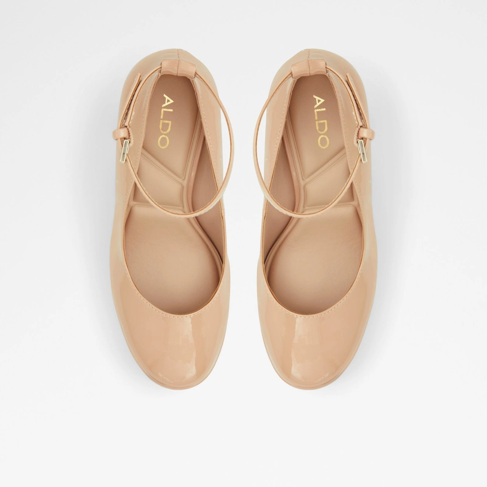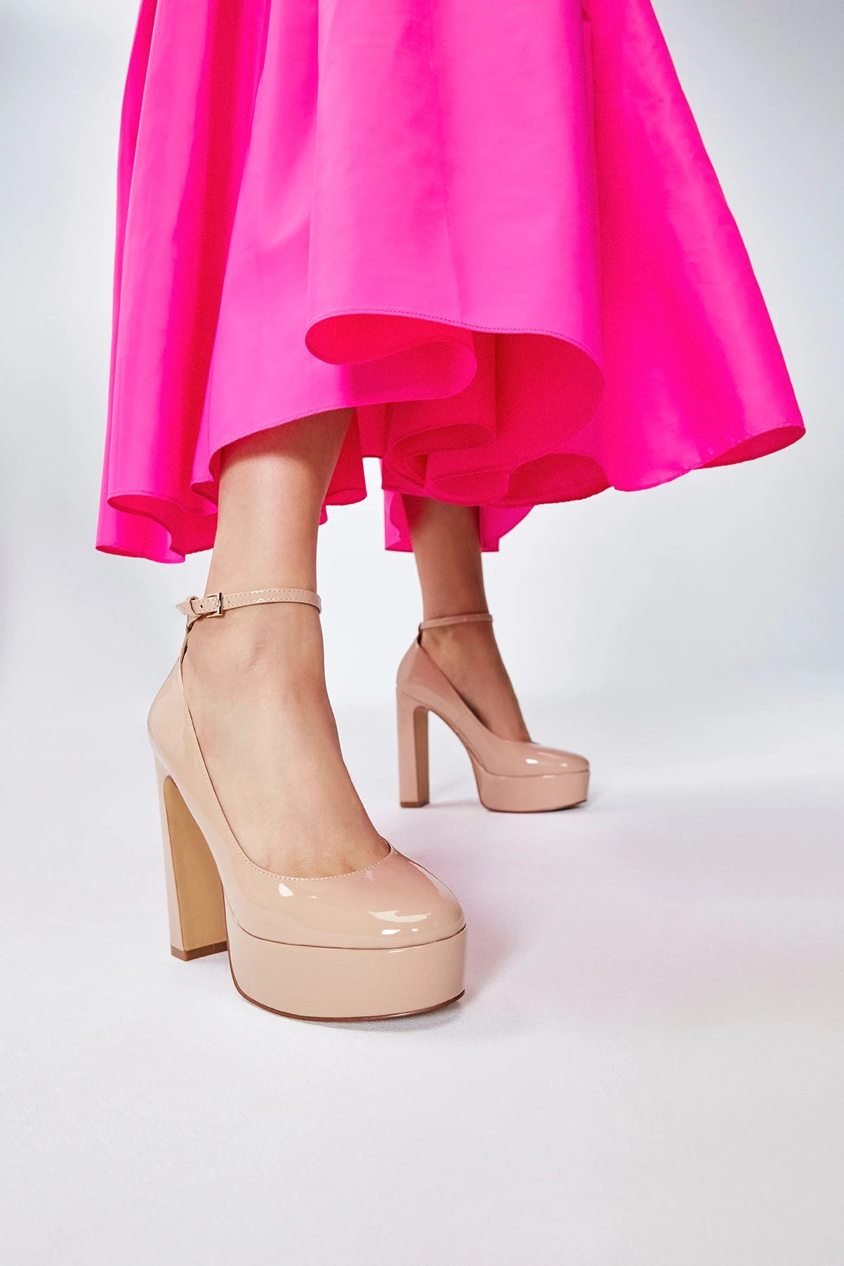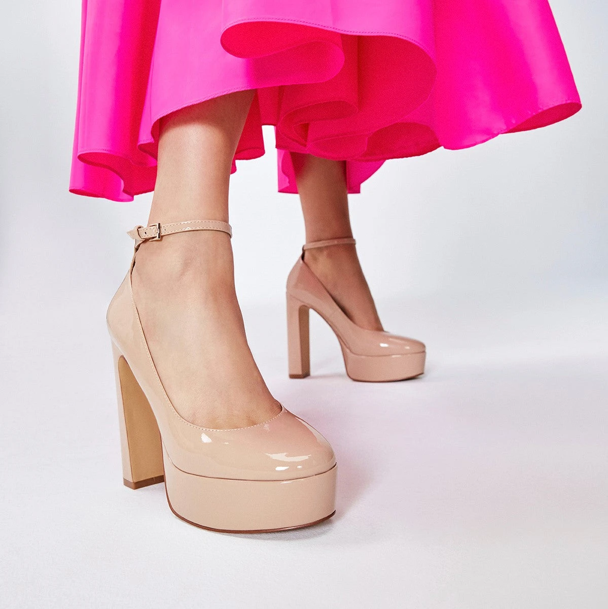 #Style notes *These towering ankle strap platform heels are what dreams are made of. #Details * Ankle strap heeled shoe * Closed almond toe * Platform * Buckle closure * Colour Bone #Materials *Upper: Synthetic *Main: Patent *Sole: Rubber #Measurements *Heel height: 5.25 cm *Platform height: 1.5 cm