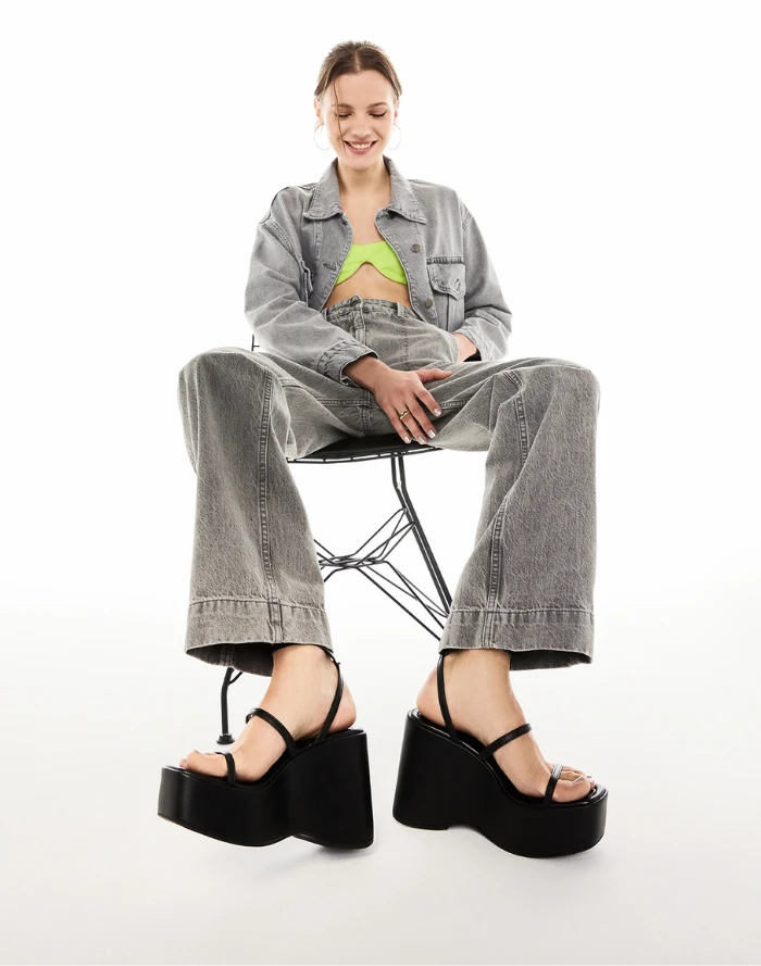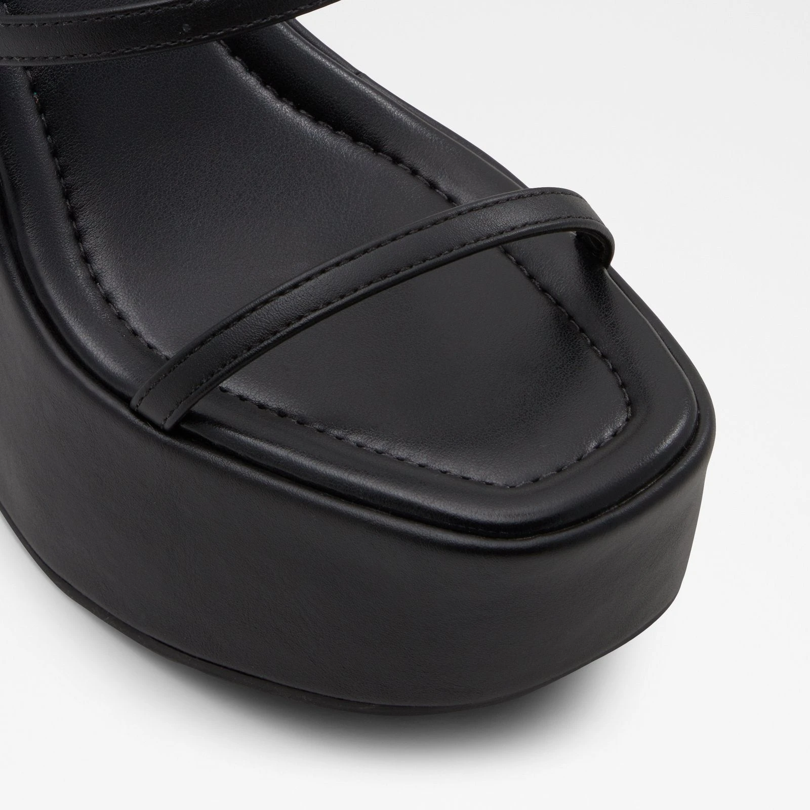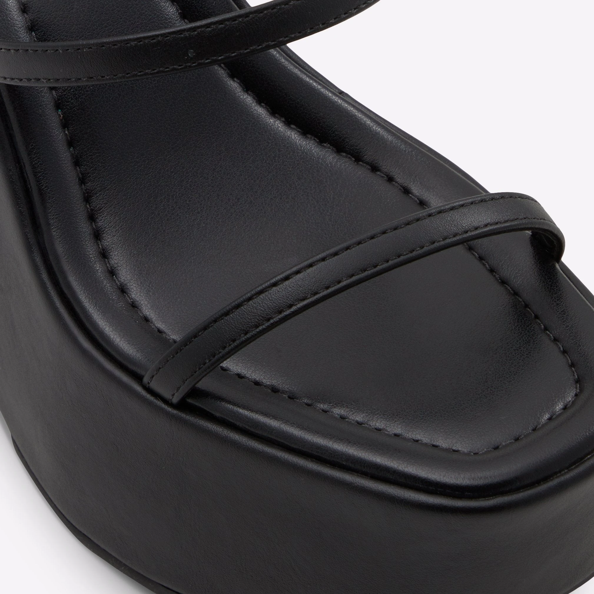#Style notes * Bold platform sandals with a barely-there strappy finish. Our trendy vegan leather Kasie wedges are delivering a major style boost to your OOTD.#Details * Strappy wedge sandal * Open almond toe * Wedge heel * Buckle closure * Colour Black #Materials *Upper: Synthetic *Main: Smooth *Sole: Rubber #Measurements *Heel height: 11.4 cm *Platform height: 5.0 cm