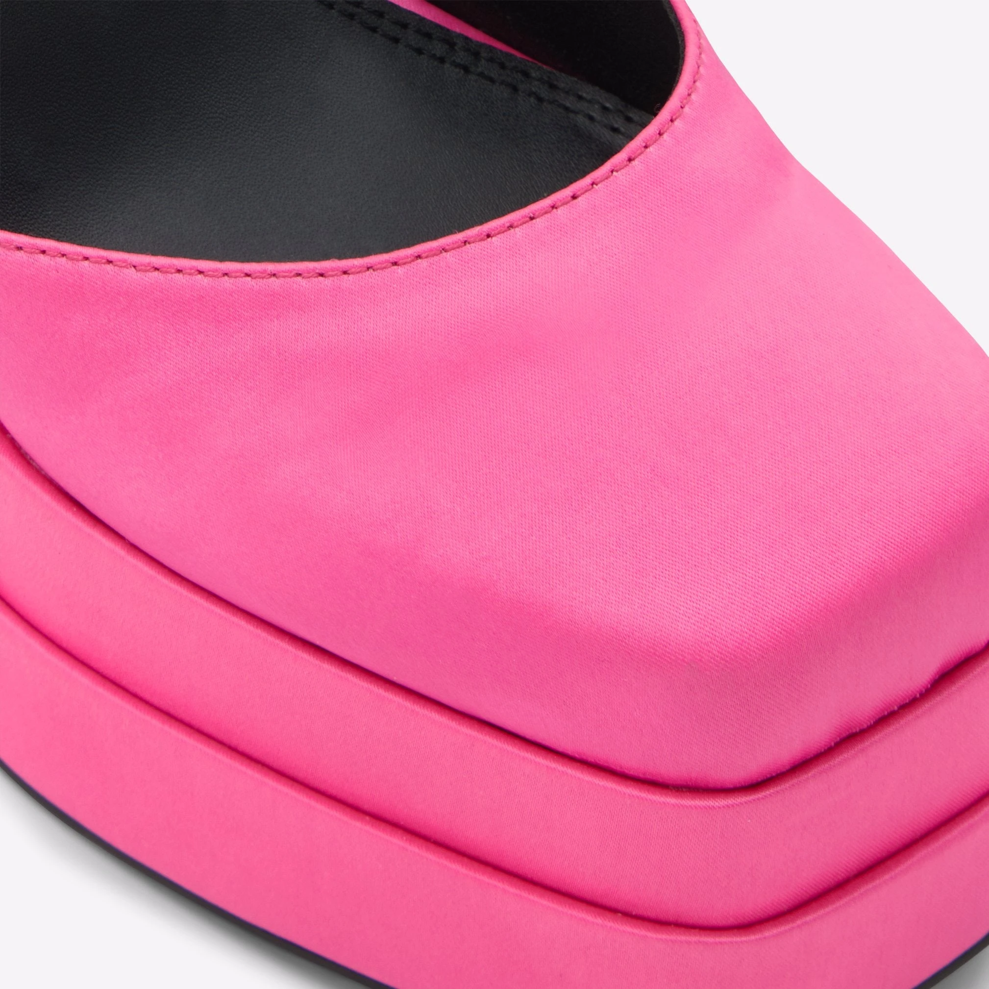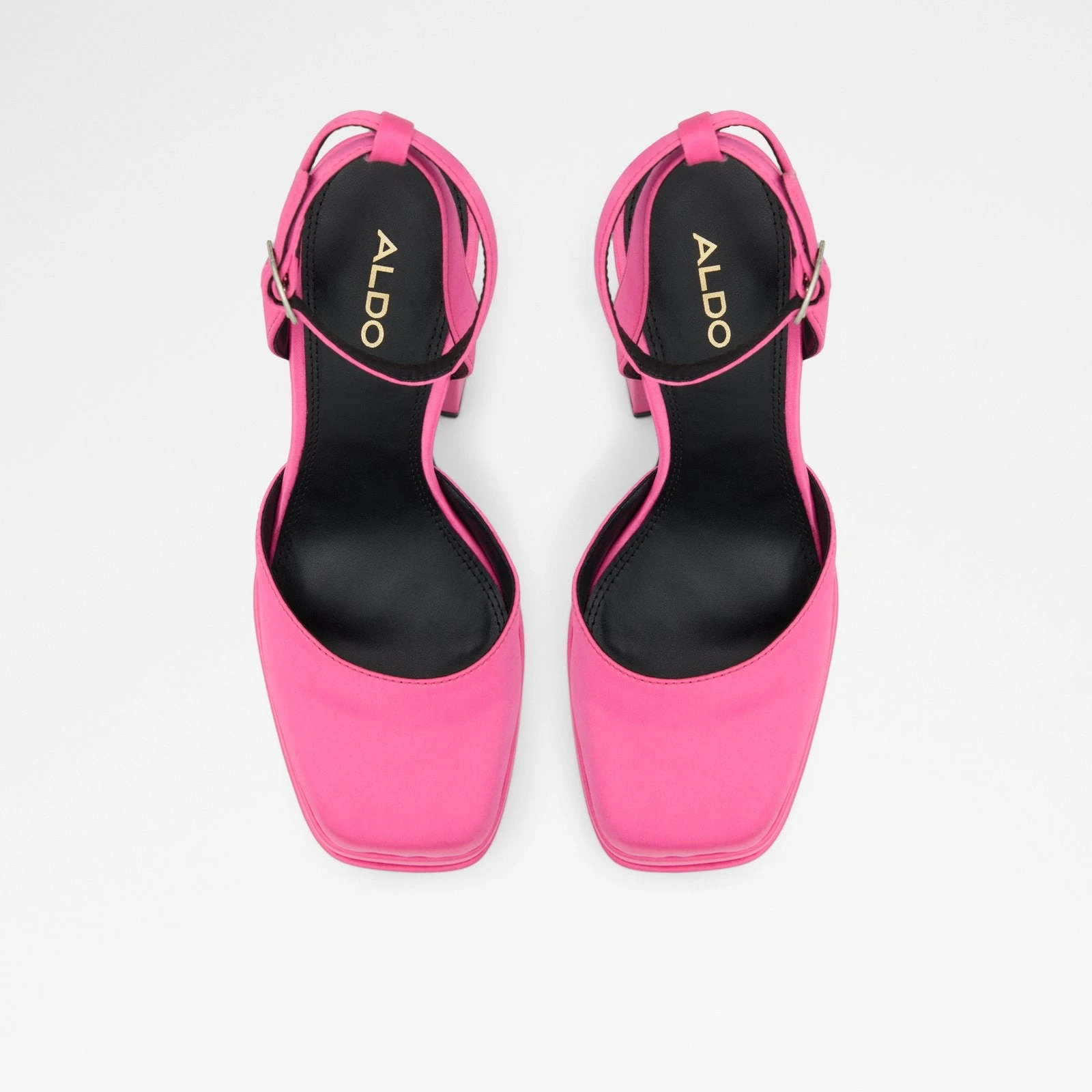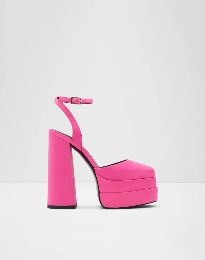 #Style notes *Distinguished by a chunky platform, these head-turning satin heels are sure to win you over this season. #Details * Ankle strap heeled shoe * Closed square toe * Flatform * Buckle closure * Colour Bright Pink #Materials *Upper: Textile *Main: Satin *Sole: Rubber #Measurements *Heel height: 5.5 cm *Platform height: 2.0 cm