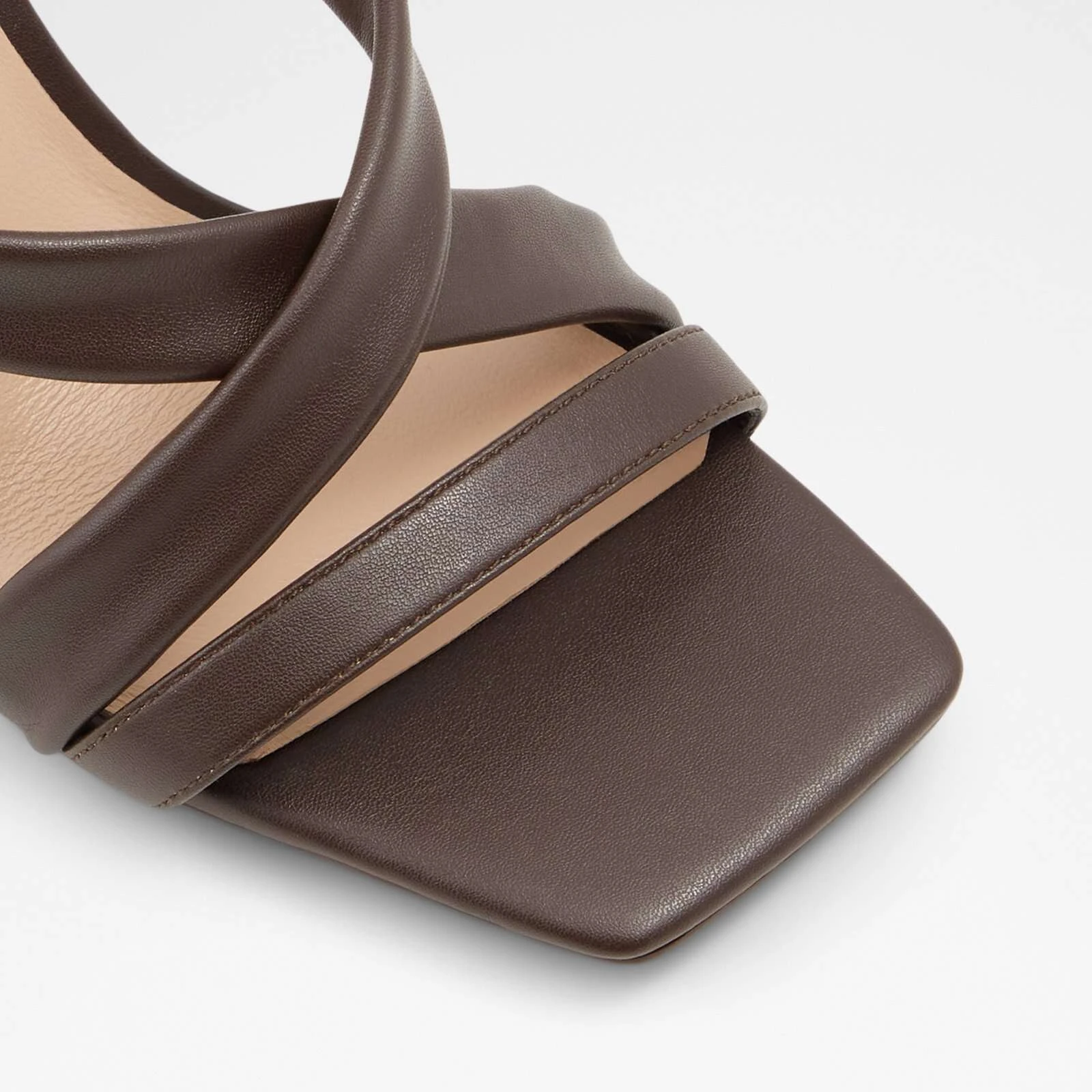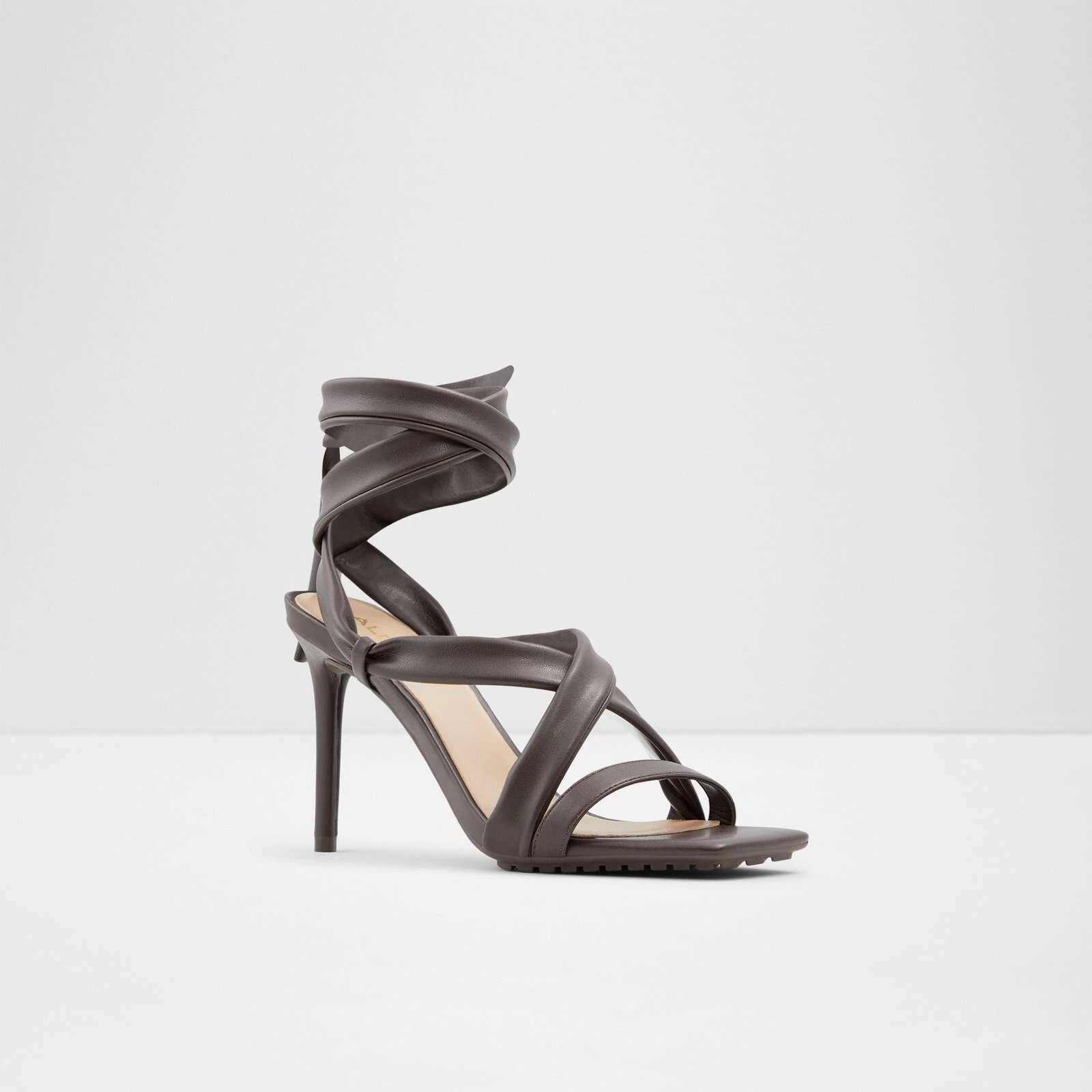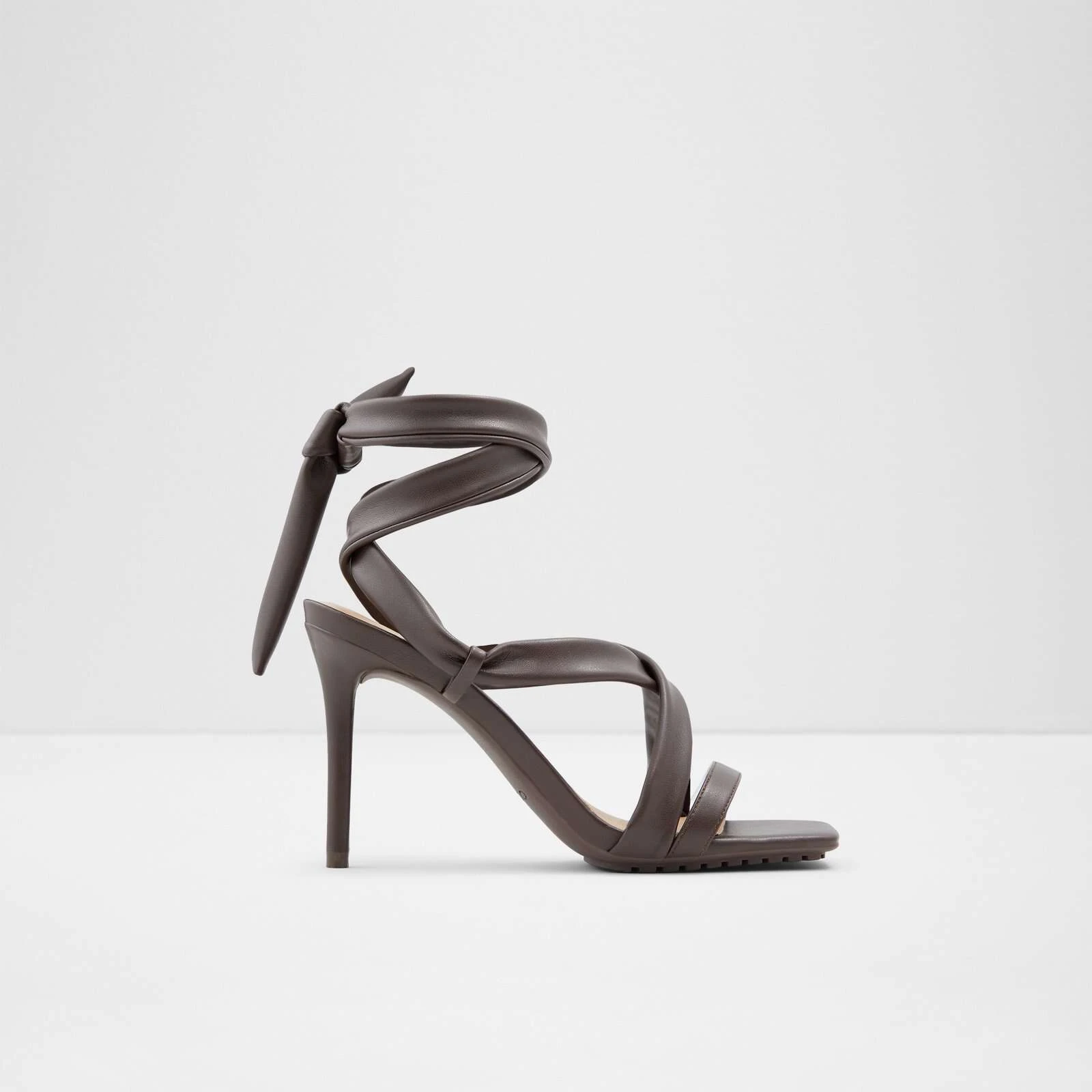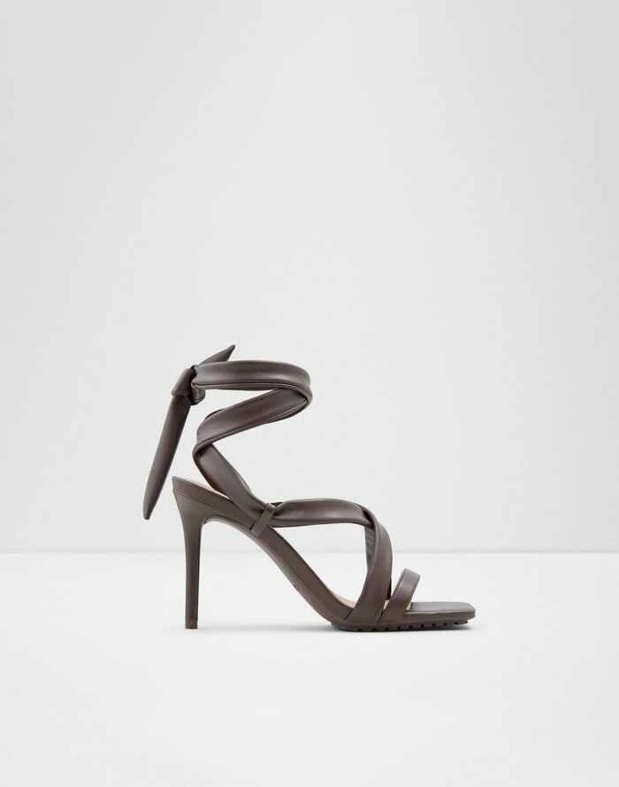#Style notes *Elevate your warm weather looks with these strappy heeled sandals designed to make a stylish statement. Featuring the season’s must-have square toe silhouette, this dress sandal is a must-have! #Details * Strappy heeled sandal * Square toe * Laces closure * Colour Dark Brown #Materials *Upper: Synthetic *Sole: Rubber #Measurements *Heel height: 9.0 cm