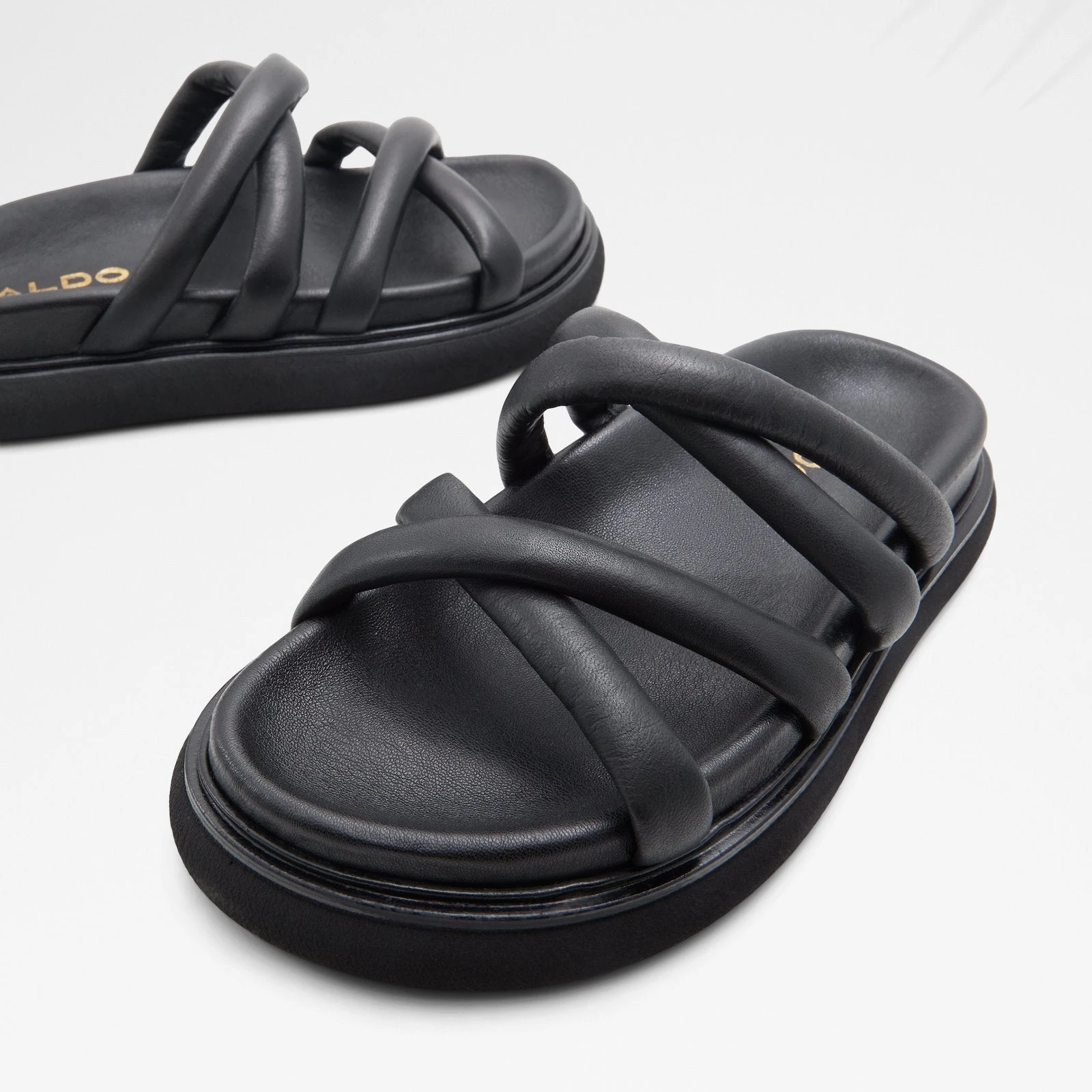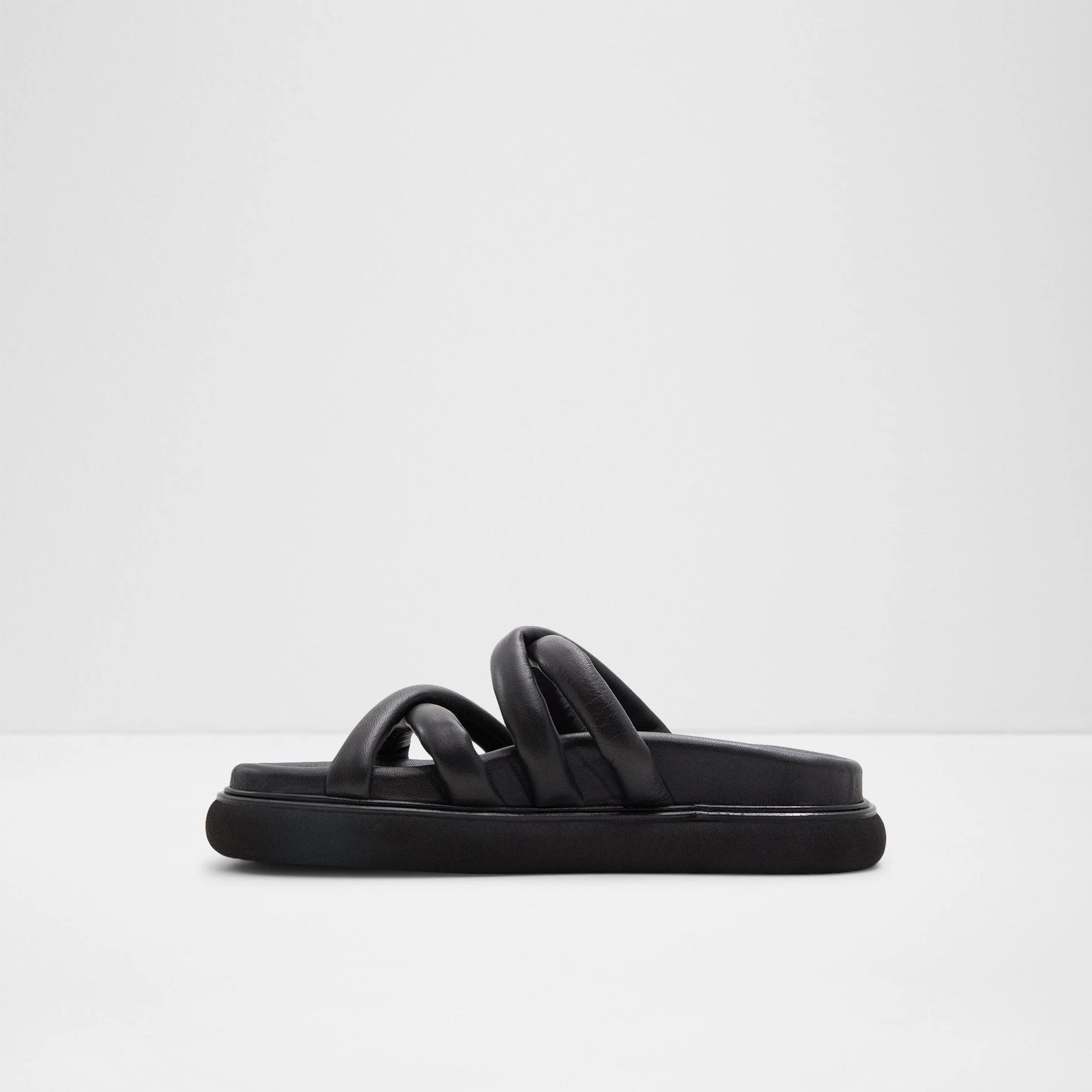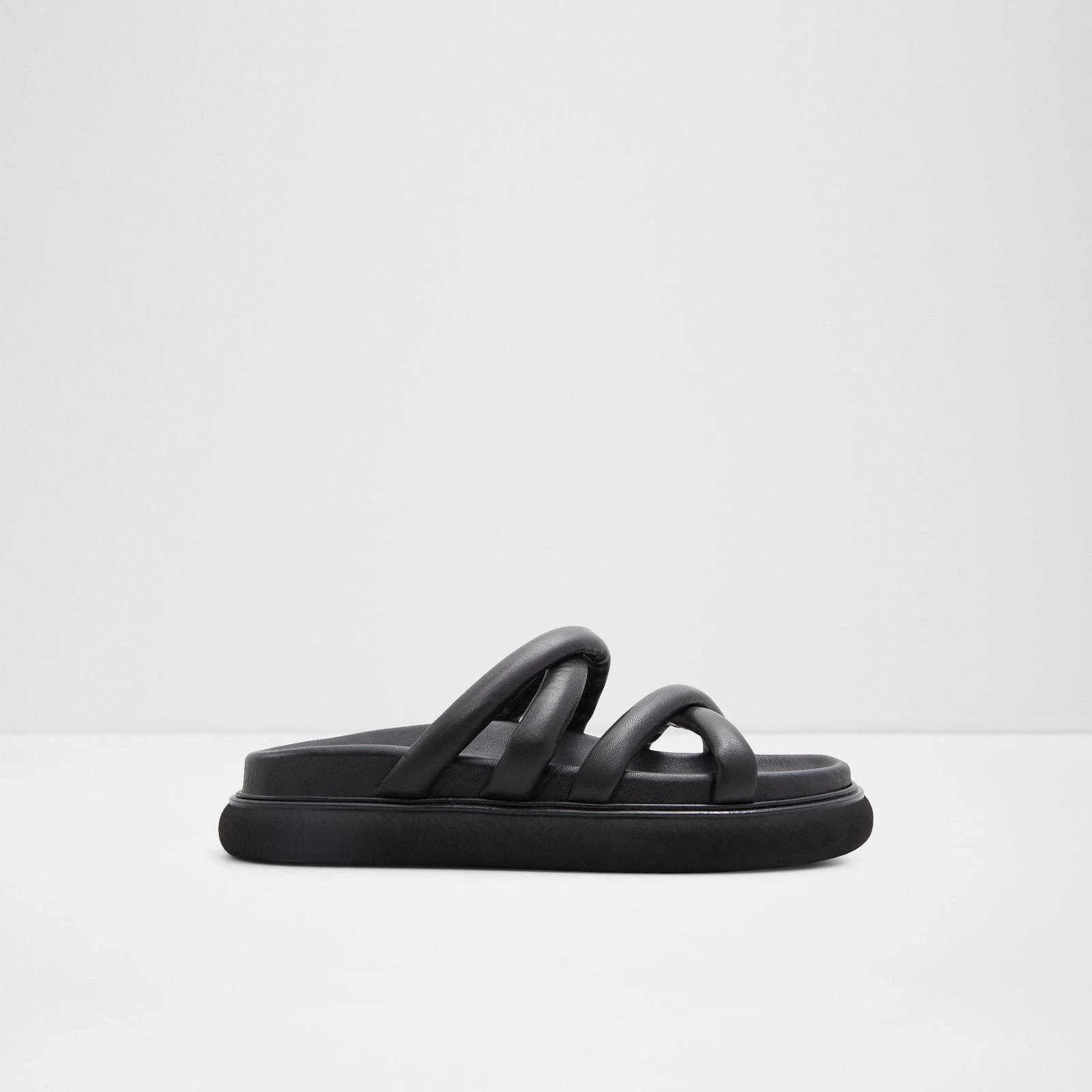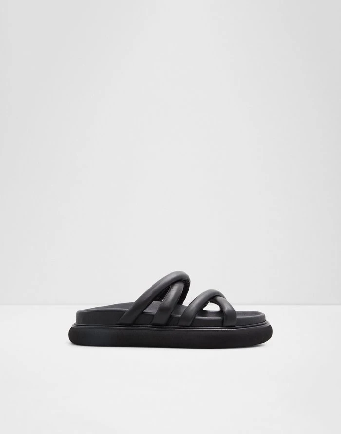 #Style Notes *Make your outfit feel endlessly fashion forward (and even futuristic!) in these wear-everywhere flat sandals with puffy straps for added texture. They’re so cool you’ll want to sport them over and over again. #Details *Colour: Black *Heel Height: 1.00 In (2.54 Cm) *Heel Type: Flat Or No Heel #Materials *Main Material: Leather *Sole Material: Rubber