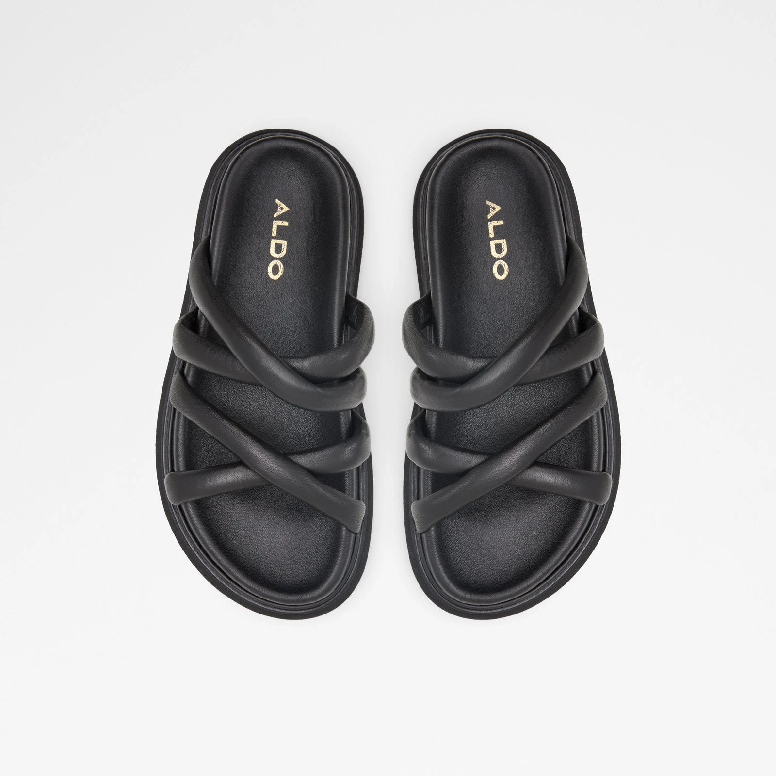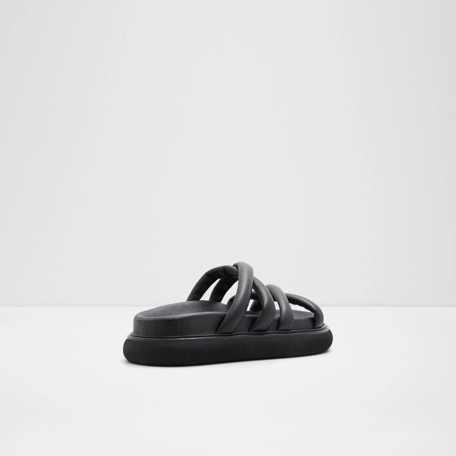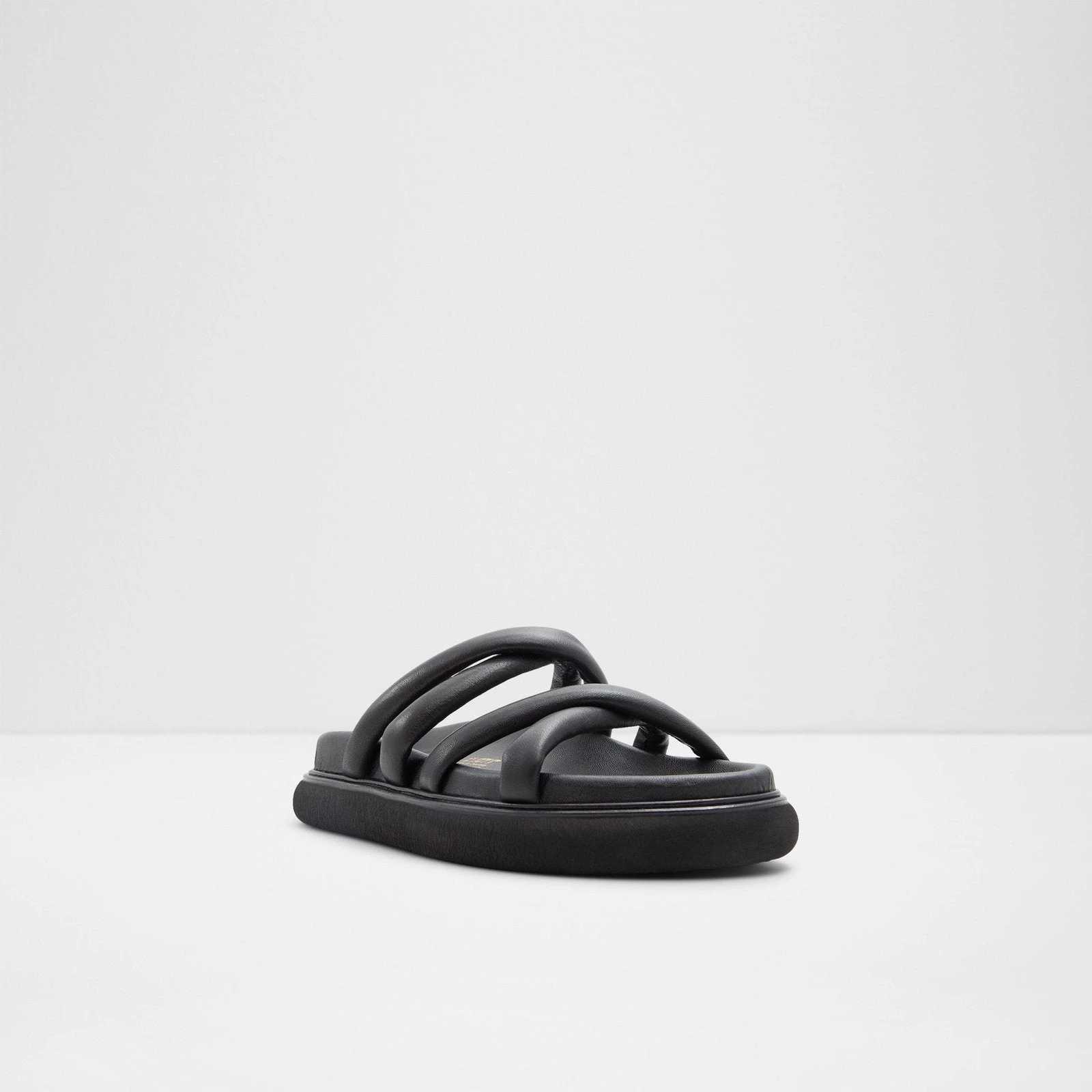#Style Notes *Make your outfit feel endlessly fashion forward (and even futuristic!) in these wear-everywhere flat sandals with puffy straps for added texture. They’re so cool you’ll want to sport them over and over again. #Details *Colour: Black *Heel Height: 1.00 In (2.54 Cm) *Heel Type: Flat Or No Heel #Materials *Main Material: Leather *Sole Material: Rubber