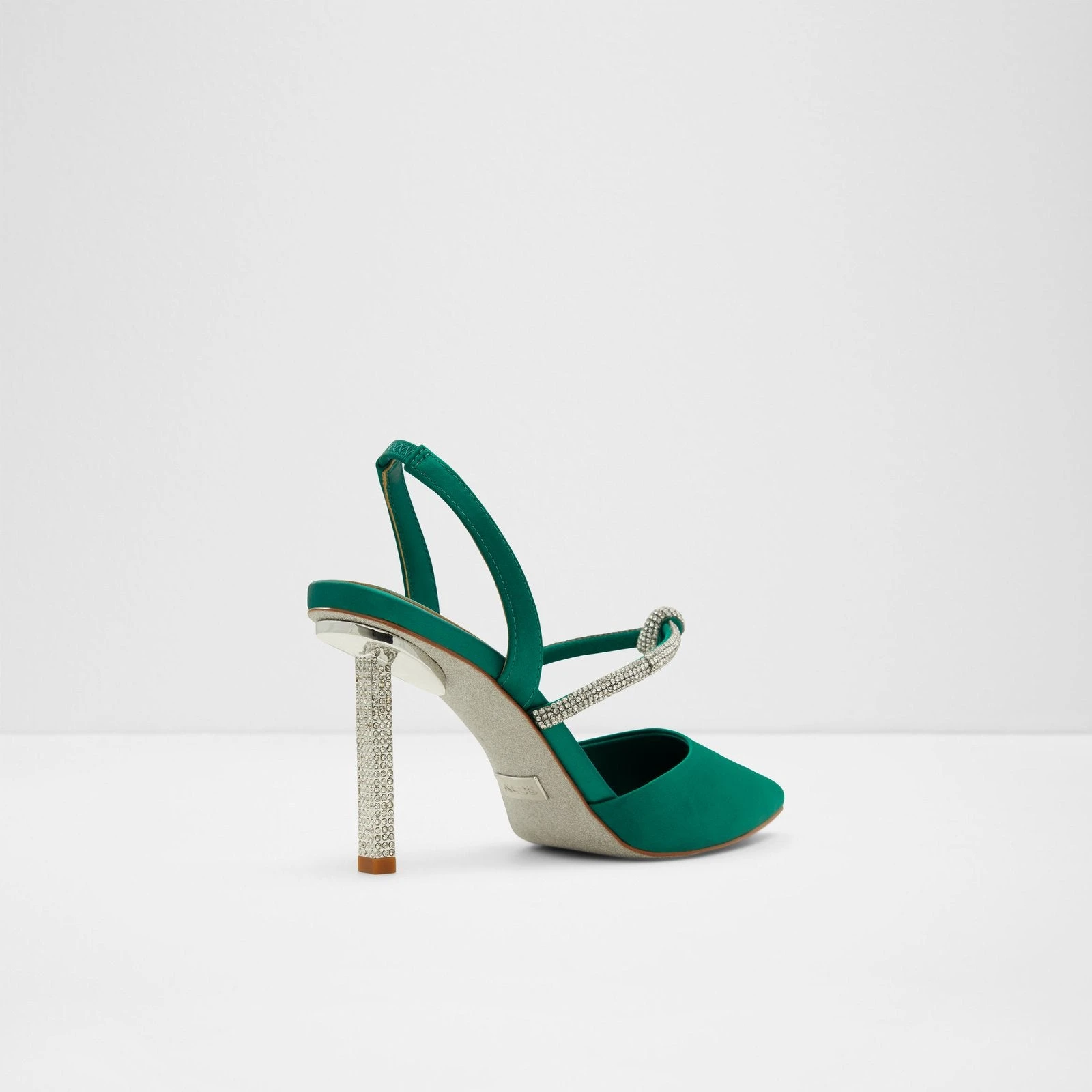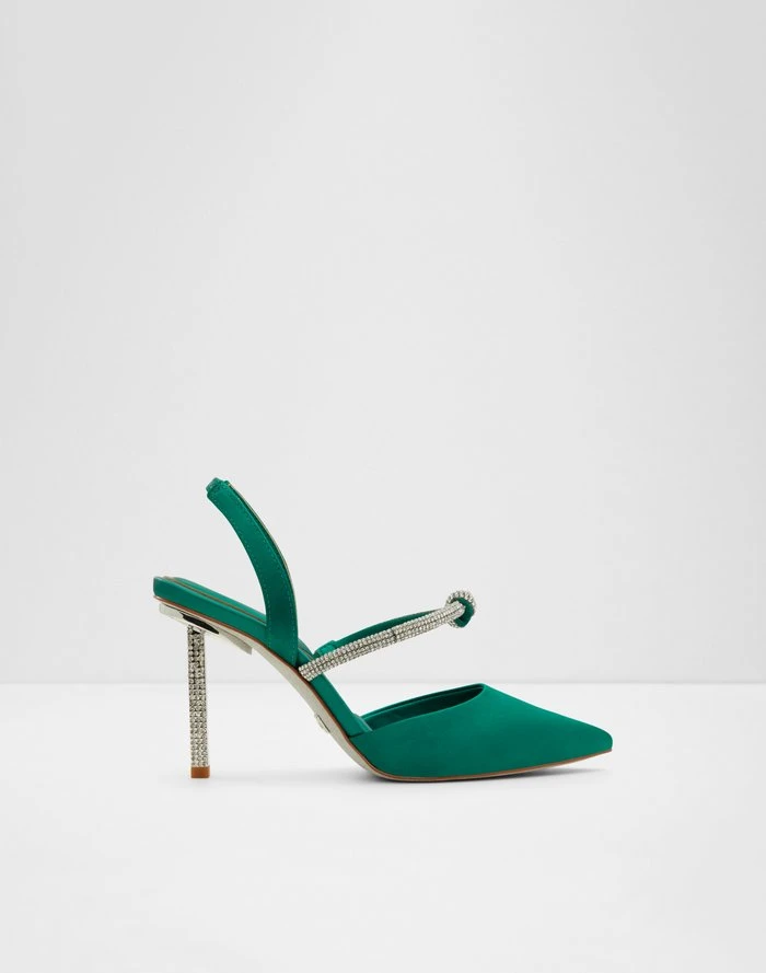 #Style notes * Your style is showstopper glam and this uber-classy Leili slip-on is totally on board. Sleek lines, a simple slingback and that seriously blinged out stiletto heel is def going to turn heads.#Details * Colour Dark Green #Measurements *Heel height: 8.3 cm