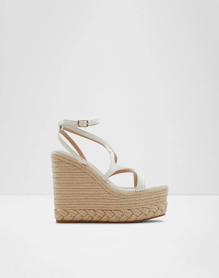 #Style notes * Well, hello there! Our strappy Portofino wedge heel sandal with thick platform sole is that special shoe that takes your OOTD to super-stylish status.#Details * Strappy wedge sandal * Open square toe * Wedge heel * Buckle closure * Colour White #Materials *Upper: Synthetic *Main: Smooth *Sole: Rubber #Measurements *Heel height: 12.7 cm *Platform height: 5.7 cm