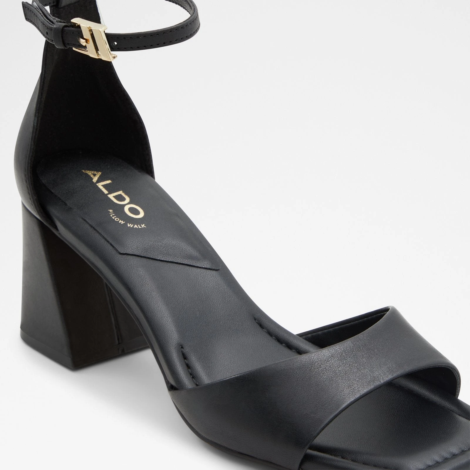 #Style notes *A square toe detail here, a slanted block heel there. These versatile ankle strap heels were made for every and any occasion. #Details * Ankle strap heeled sandal * Open square toe * Block heel * Buckle closure * Colour Black #Materials *Upper: Leather *Main: Smooth *Sole: Rubber #Measurements *Heel height: 2.5 inches