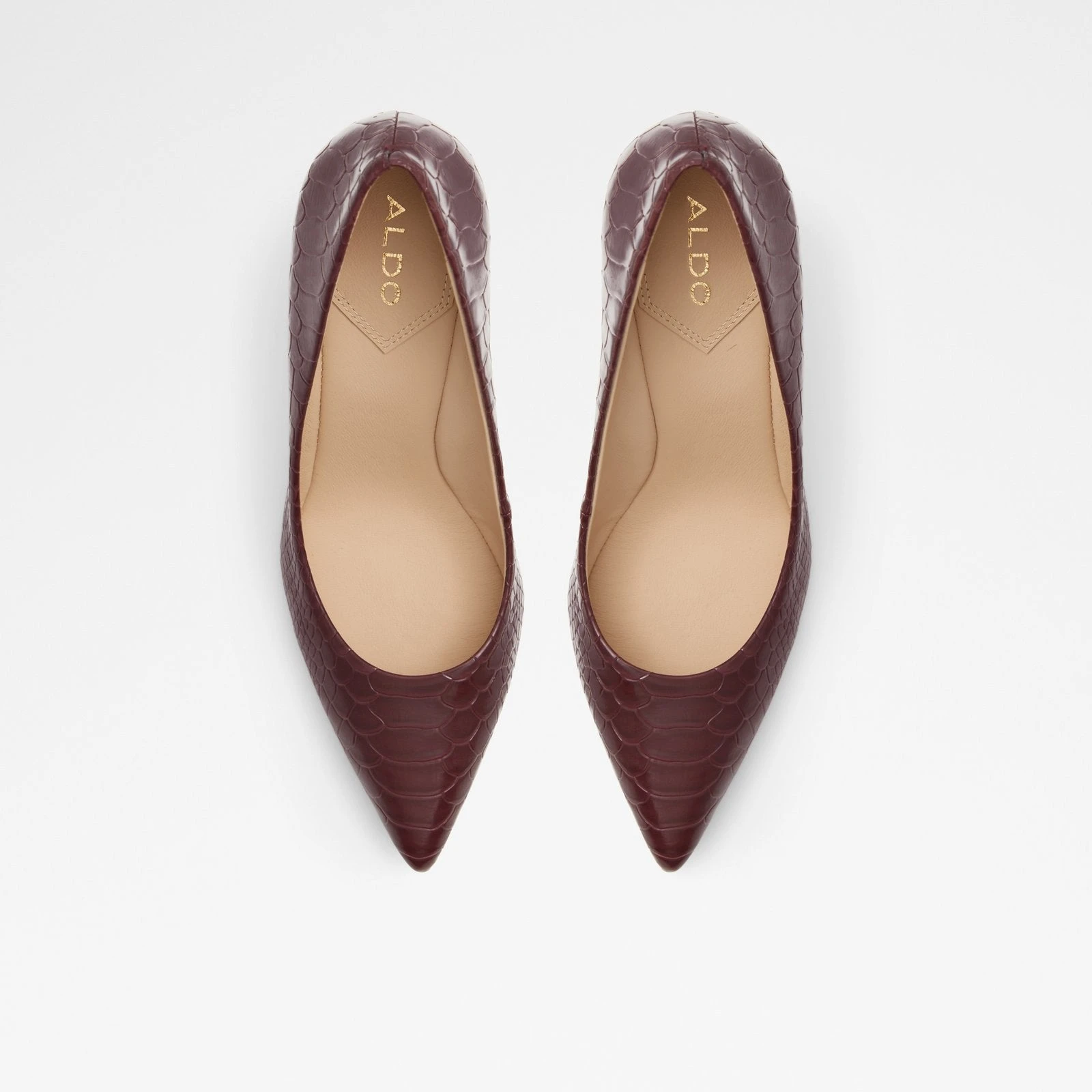 #Style notes *Timeless in design, these chic pumps feature flexible soles for increased foot control and comfort. The perfect high heel shoe to rock all day! #Details * Pump * Closed pointy toe * Slip-on * Colour Bordo #Materials *Upper: Synthetic *Main: Crocodile skin *Sole: Rubber #Measurements *Heel height: 3.5 cm