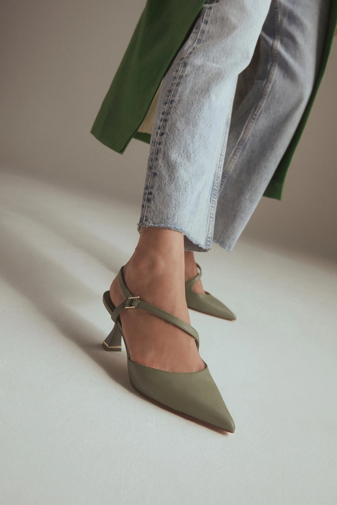 #Style notes * #Details * Colour Green #Measurements *Heel height: 2.75 cm