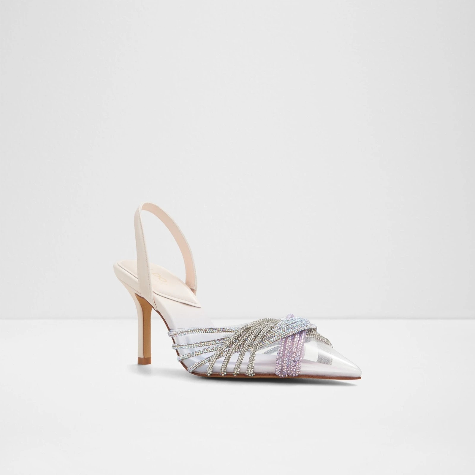 #Style notes * #Details * Sling back high heel * Closed pointy toe * Stiletto heel * Slip-on * Rhinestone embellishment * Colour Metallic Multi #Materials *Upper: Mixed materials *Main: Synthetic *Sole: Rubber #Measurements *Heel height: 8.9 cm