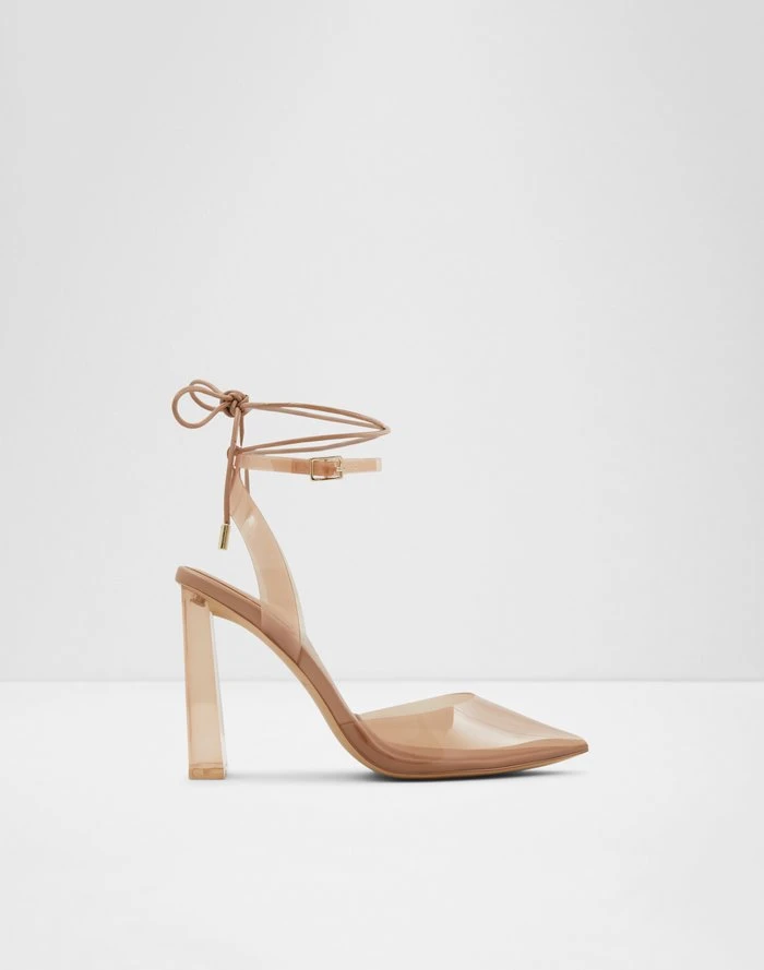 #Style Notes *We’re VERY into these Tilah heels. The trendy ankle strap and block heel add some much-needed drama and flair to an otherwise timeless design. #Details *Colour: Medium Beige *Heel Height: 4.00 In (10.16 Cm) *Heel Type: Block (Thick) #Materials *Main Material: Synthetic *Sole Material: Rubber