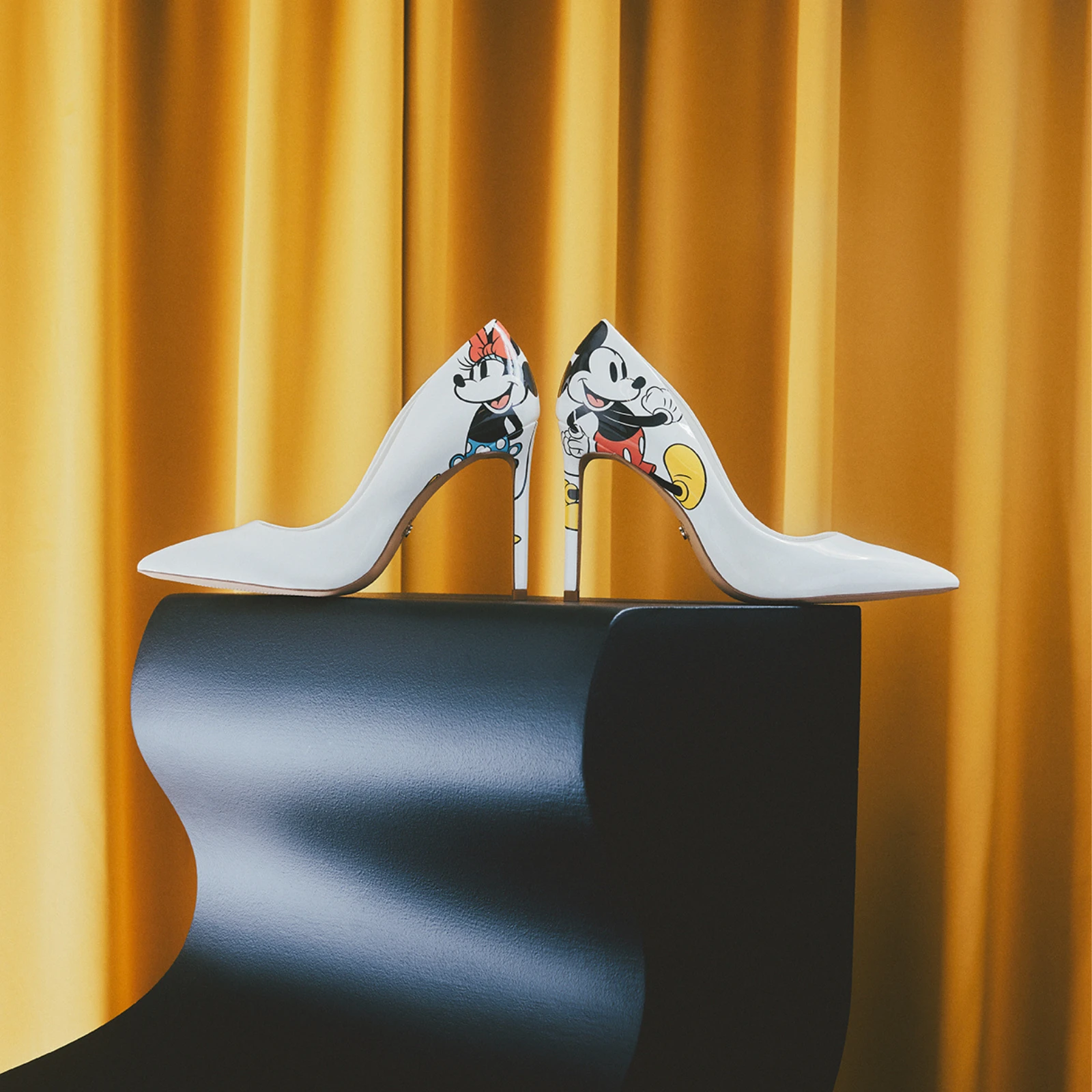 Pillow Walk technology- a double layer of cushion comfort so you can feel as good as you look.ย Elevate your look with the subtle charm of Disney x ALDO. Our classic Stessy gets a touch of whimsy and romance with the mirrored Mickey Mouse and Minnie Mouse characters on either shoe to make a perfect pair.ย #Details * Pump * Closed pointy toe * Stiletto heel * Slip on * Colour White #Materials *Upper: Synthetic *Main: Patent *Sole: Rubber #Measurements *Heel height: 4.0 inches